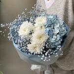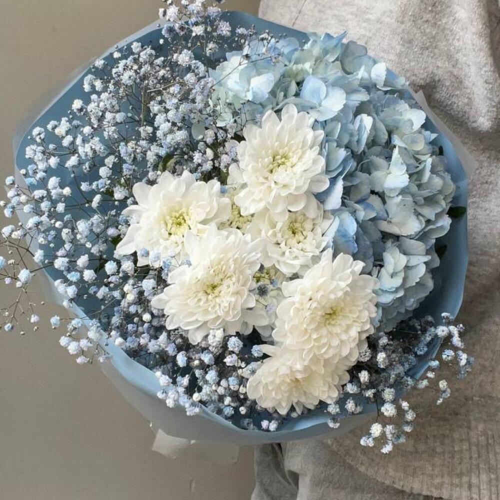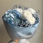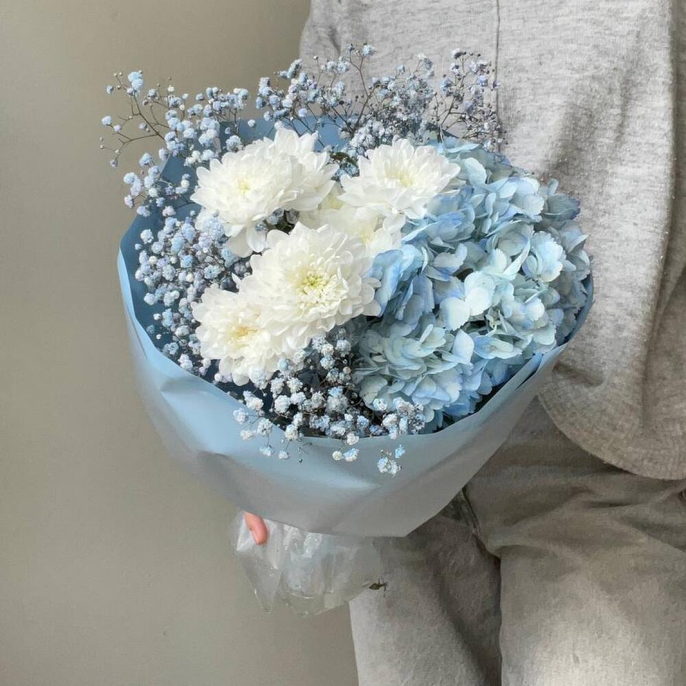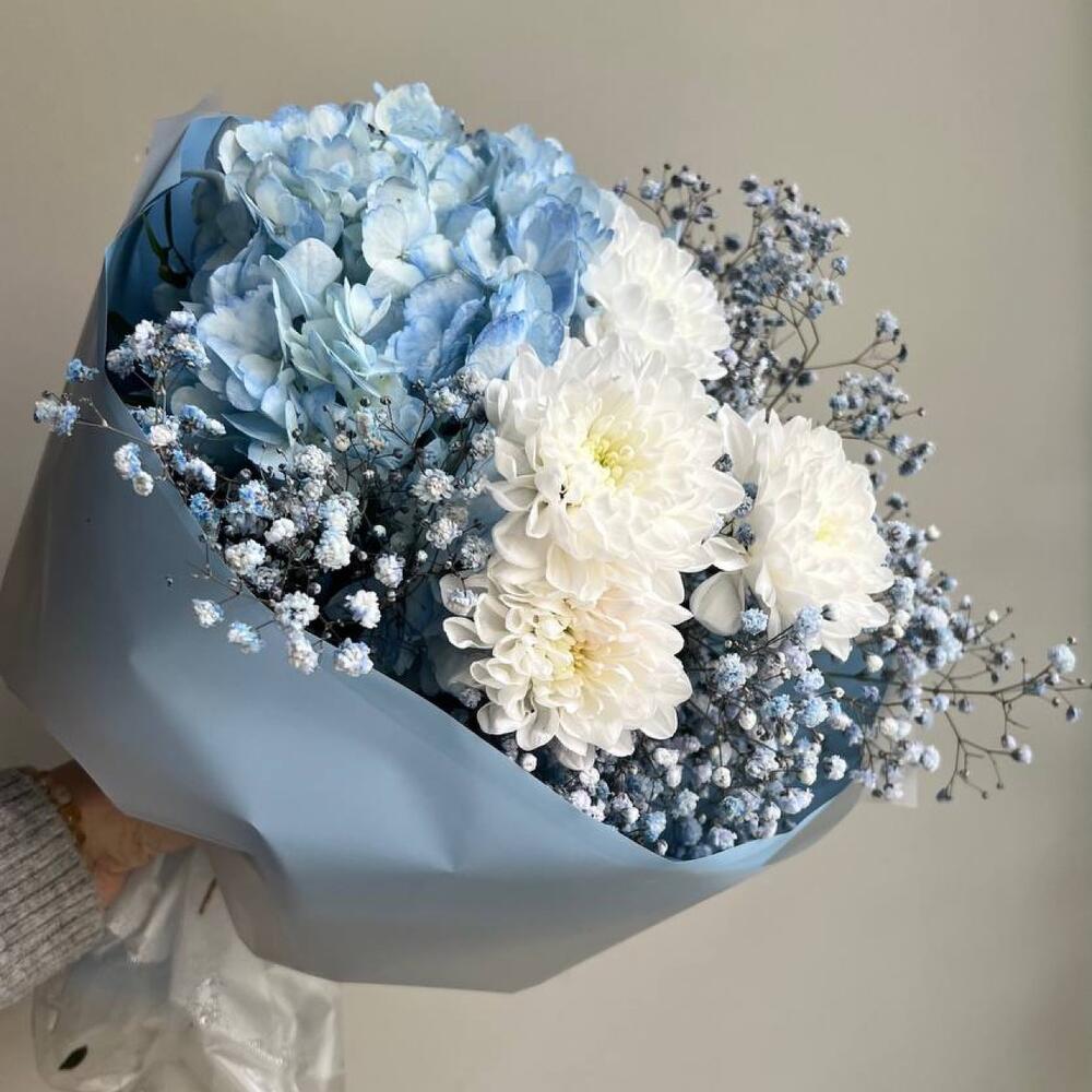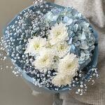 Гипсофила - 2 шт. Гортензия - 1 шт. Хризантема кустовая - 1 шт. Упаковка дизайнерская - 1 шт.