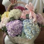 Воздушная и эффектная корзина из гортензий точно произведет впечатление на получателя и подойдет к любому торжеству. Все композиции собираем на водной губке, поливать ее ежедневно. ВАЖНО! Гортензия очень любит воду, поэтому поливать композицию можно пару раз в день и по возможности опрыскивать цветы сверху по всему периметру композиции. Так композиция будет радовать еще больше 👍