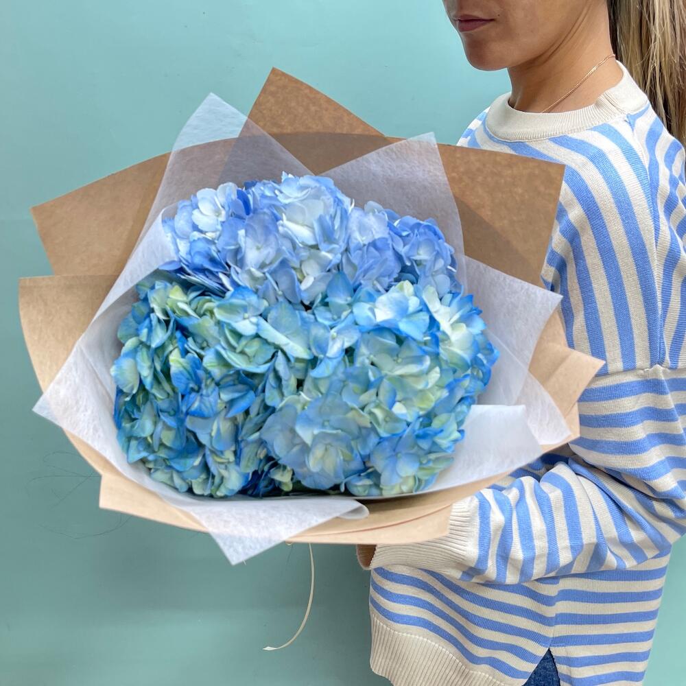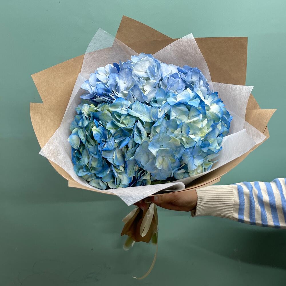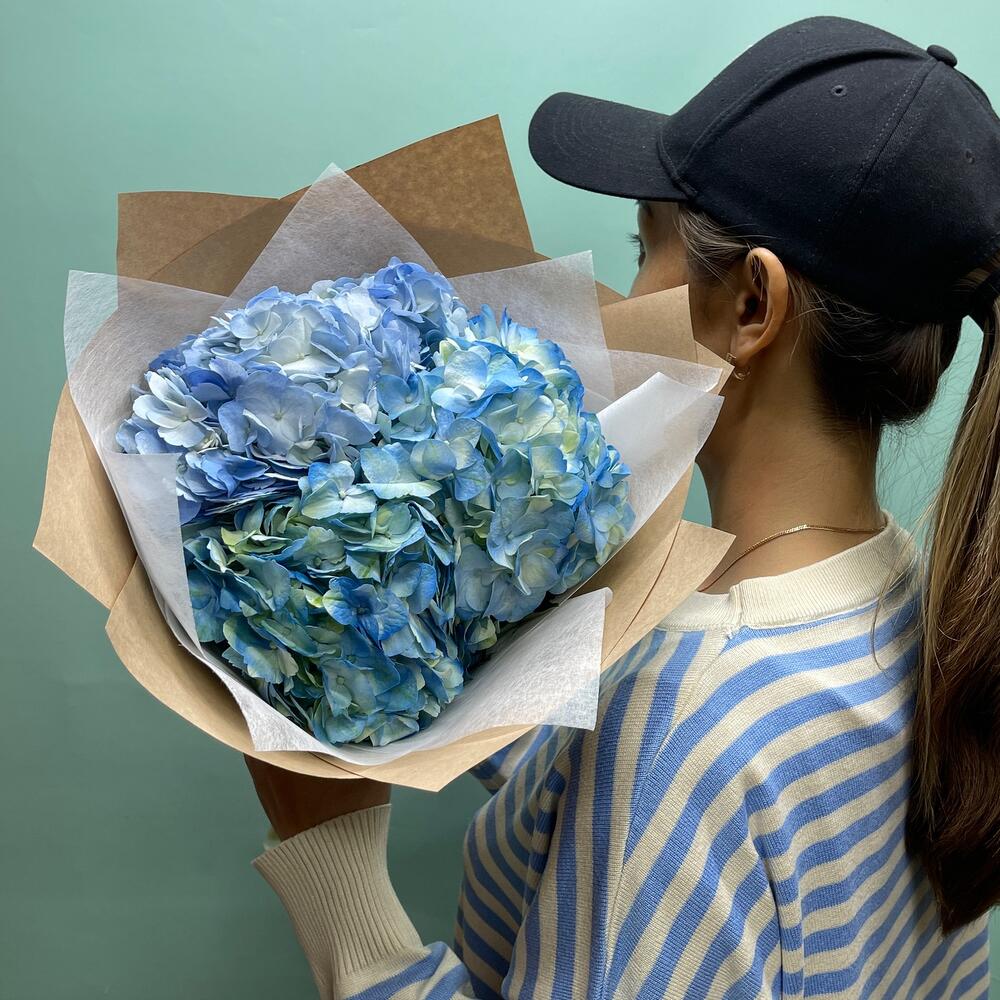 Гортензия - 3 шт. Лента атласная - 1 шт. Упаковка дизайнерская - 2 шт.