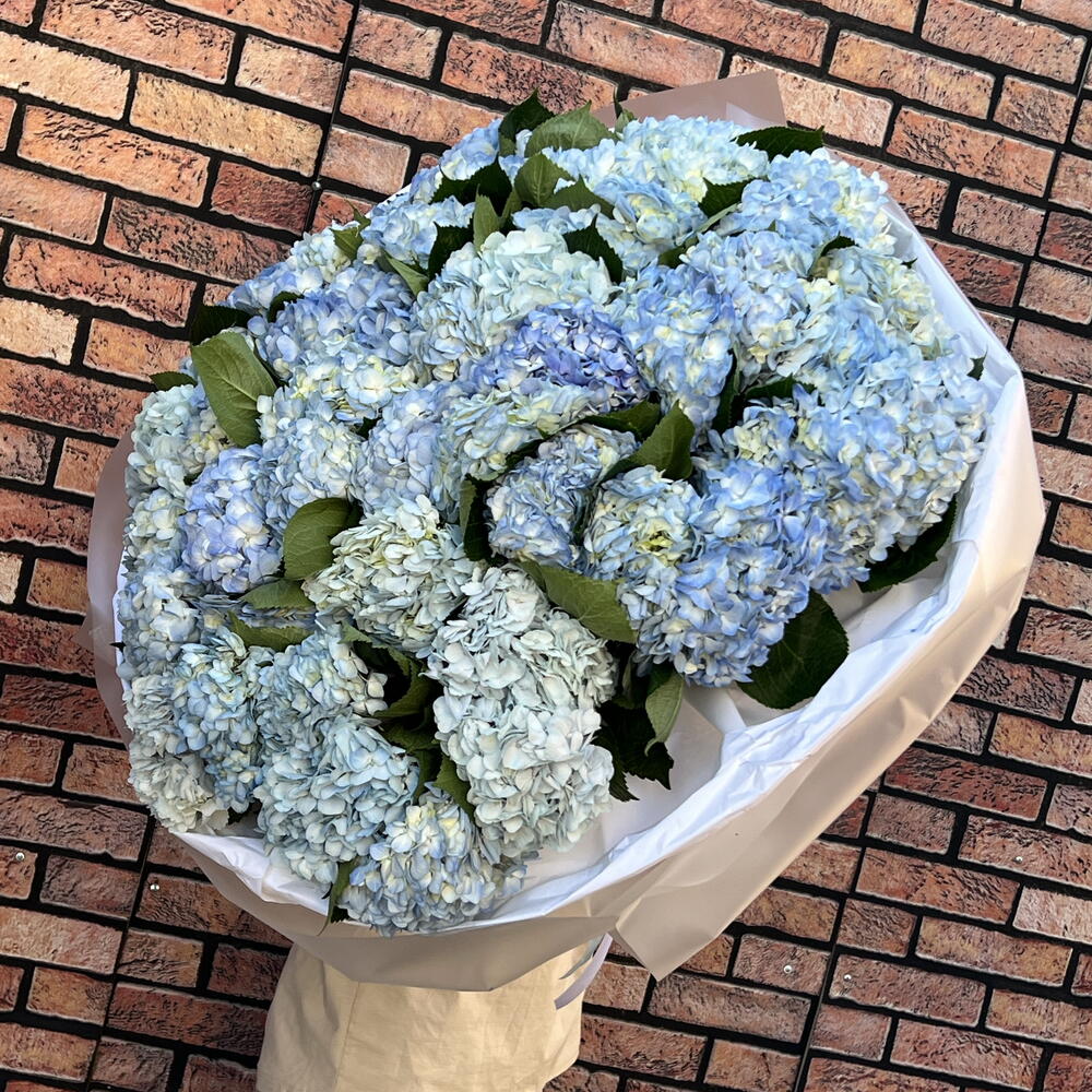 Гортензия - 35 шт. Лента атласная - 1 шт. Упаковка дизайнерская - 12 шт.