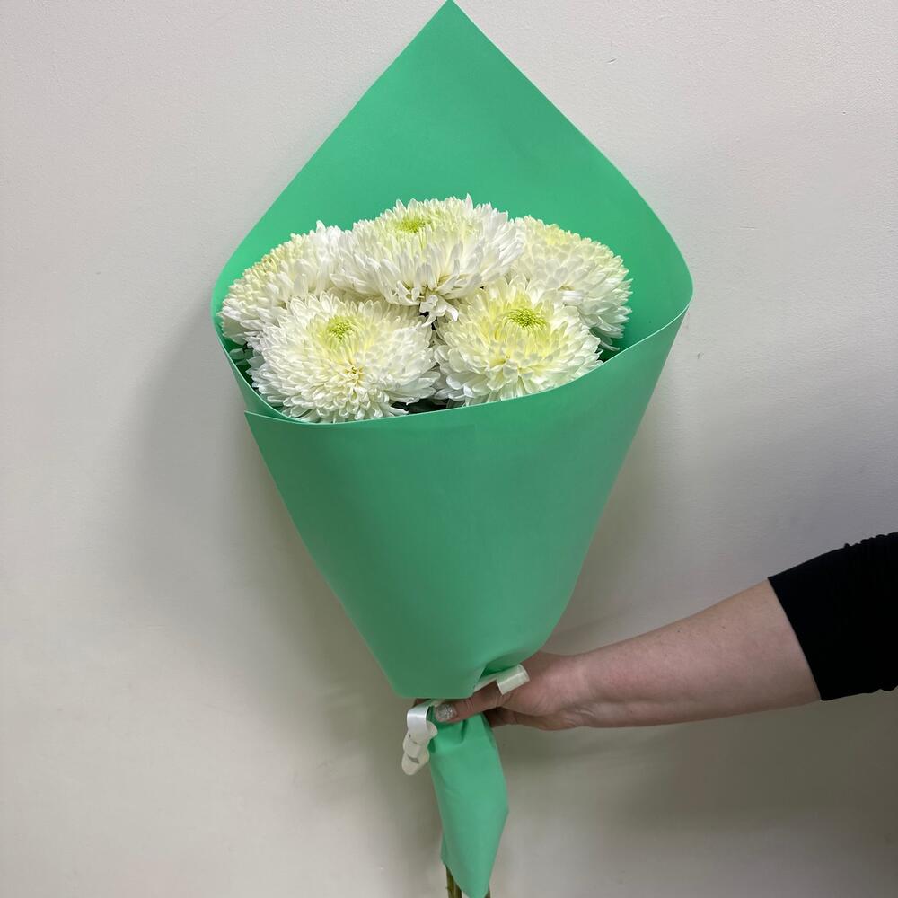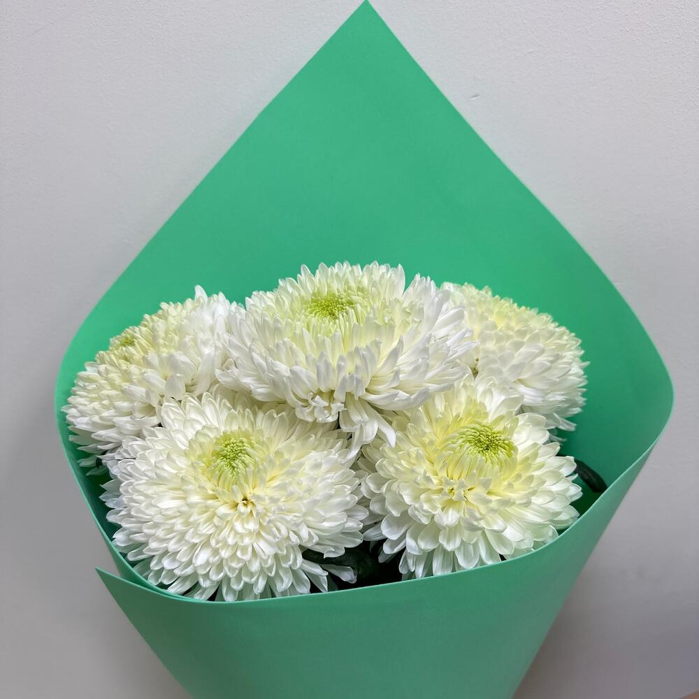 Упаковка дизайнерская - 1 шт. Хризантема одноголовая белая - 5 шт.