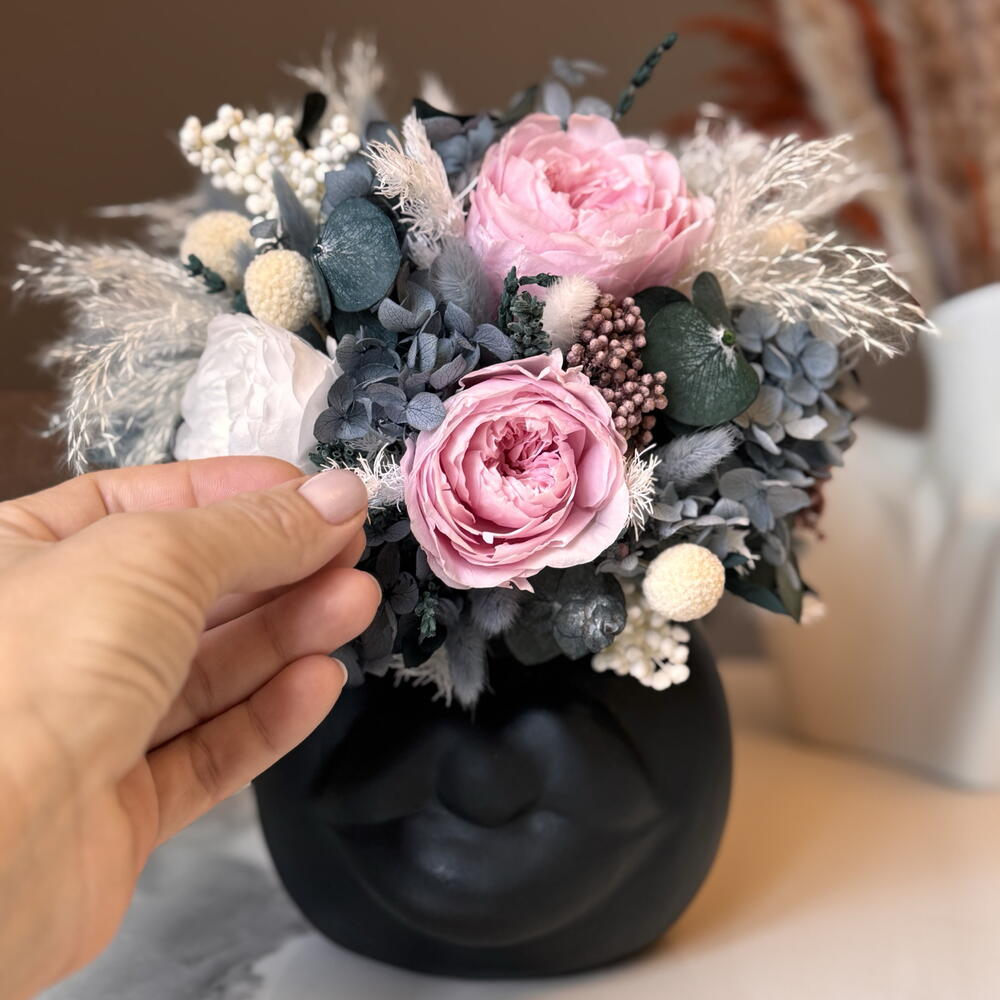 Ваш идеальный сад, который не требует забот. Только восхищение! Цветы, которые живут вечно. Почти как любовь. Представьте, что ваша любимая роза не опала, а осталась с вами… Навсегда. Наши интерьерные композиции — это не просто декор, а капелька волшебства. Мы берем самые красивые, 100% живые цветы и даруем им вечную юность. Они навсегда остаются нежными, бархатистыми и прекрасными — чтобы радовать вас каждый день. Почему эти композиции становятся частью семьи? Они все такие разные, каждая со своим характером. Но в сердце каждой — общие секреты их очарования: ✔️Они остаются с вами на годы. Больше не нужно прощаться с увядшей красотой. Ваш любимый букет будет согревать вас своим совершенством очень-очень долго. ✔️Они не просят почти ничего. Ни капельки воды, ни вашего времени. Просто поселите их в любимом уголке — и всё. Они не капризничают, а дарят вам только радость. ✔️Они — верные друзья. Их краски не потускнеют, а лепесточки не поникнут. Они всегда выглядят совершенно, как будто только что расцвели. ✔️Они безопасны и натуральны. Созданы природой и бережной технологией, чтобы вы могли спокойно доверить им уют в своем гнездышке. ✔️Их легко брать с собой. Переезжаете или хотите сделать подарок в другом городе? Они спокойно перенесут дорогу, чтобы продолжить дарить радость. ✔️Они берегут ваши средства. Одна такая композиция с любовью заменяет множество обычных букетов. Это мудрое и элегантное решение для тех, кто ценит постоянство. Позаботиться о них — проще простого Их вечная молодость нуждается лишь в крошечном внимании: · Подарите им уютный уголок вдали от яркого солнышка, чтобы их наряды оставались яркими. · Иногда, раз в полгода, устраивайте им легкую ванну: просто сдуйте пылинки прохладным ветерком из фена. А еще… они могут пахнуть! Прикоснитесь к композиции с лавандой, корицей или эвкалиптом — и вы почувствуете едва уловимый, натуральный аромат. Тихое, нежное дополнение к их красоте. Пригласите в свой дом магию, которой не страшно время. Наши композиции из стабилизированных цветов и душистых сухоцветов — это больше, чем украшение. Это история вашей жизни, которая всегда в цвету.