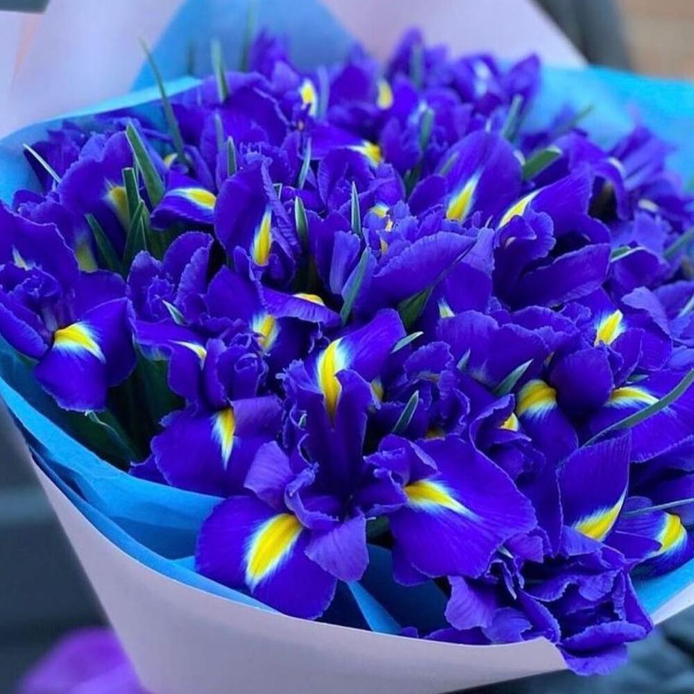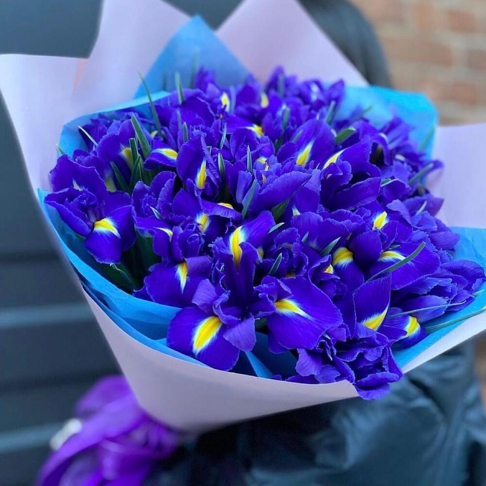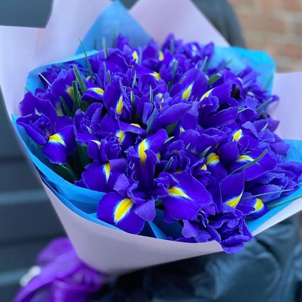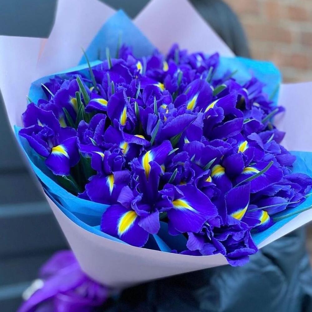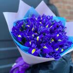 Ирис - 51 шт. Лента атласная - 2 шт. Открытка - 1 шт. Оформление - 5 шт.