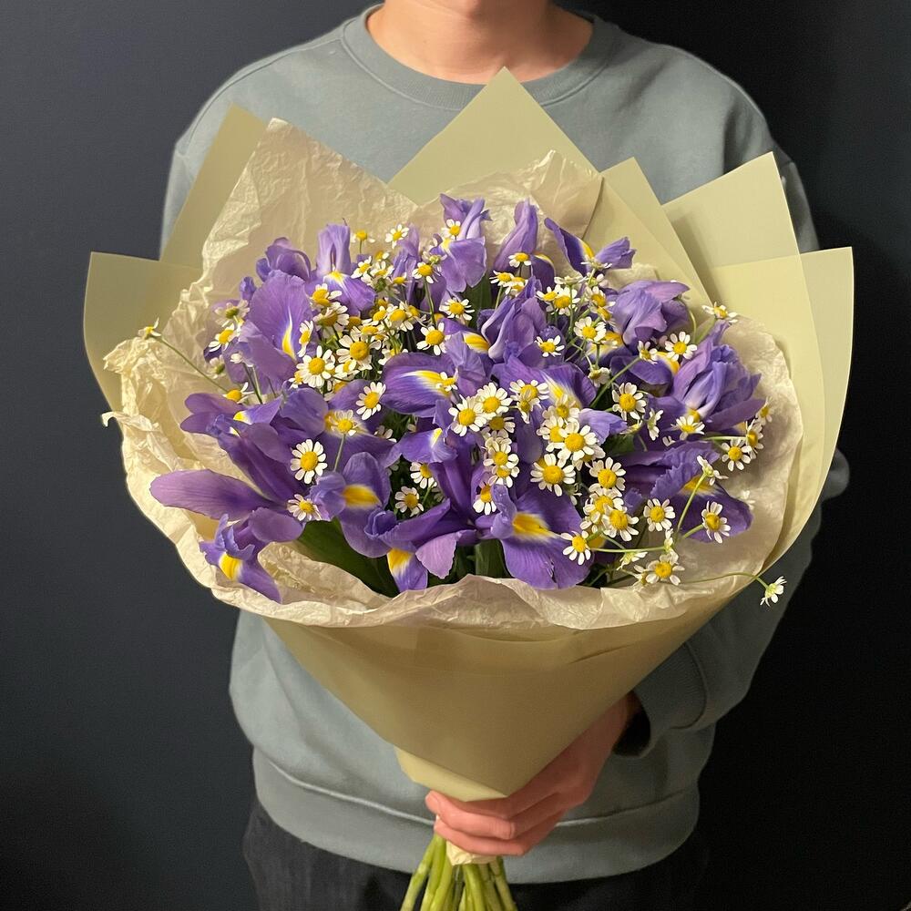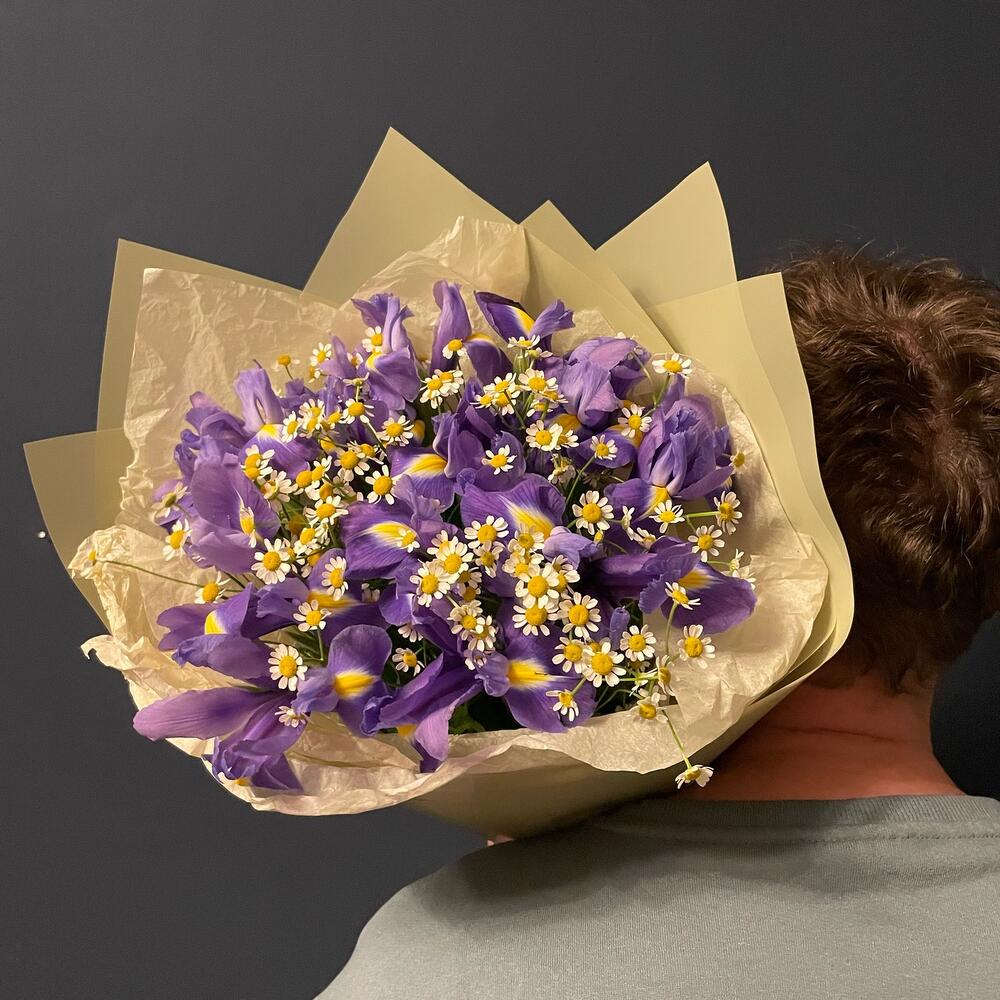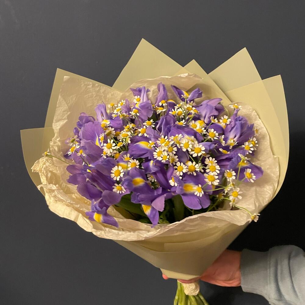 Ирис - 13 шт. Танацетум камилла - 6 шт. Упаковка дизайнерская - 1 шт.