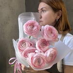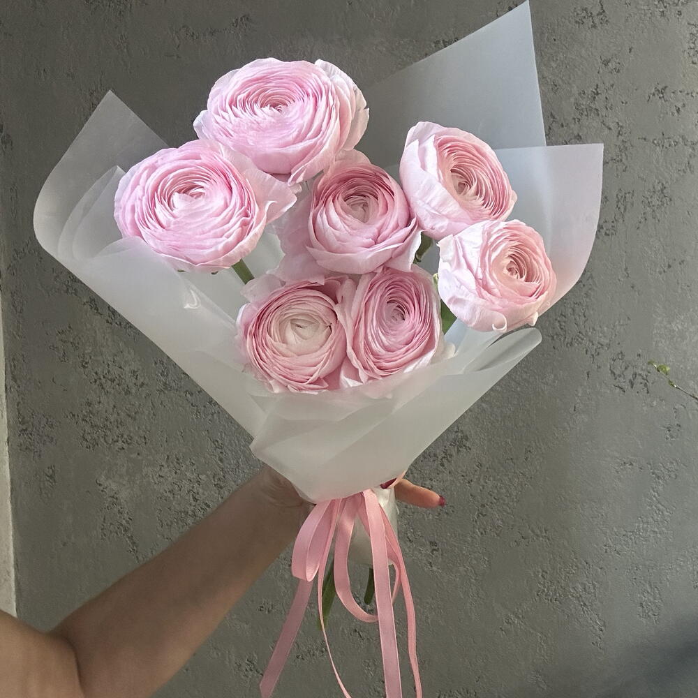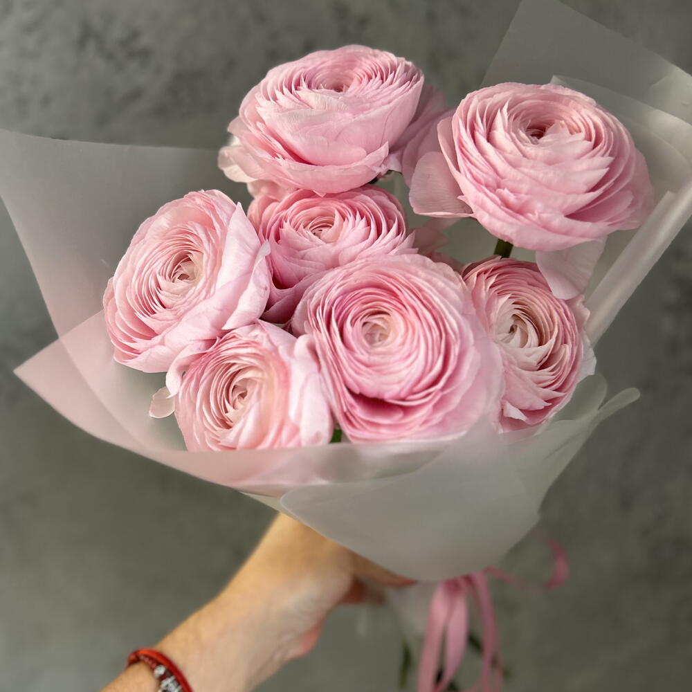 Упаковка дизайнерская - 1 шт. ранункулюсы розовые ( премиум) - 7 шт.