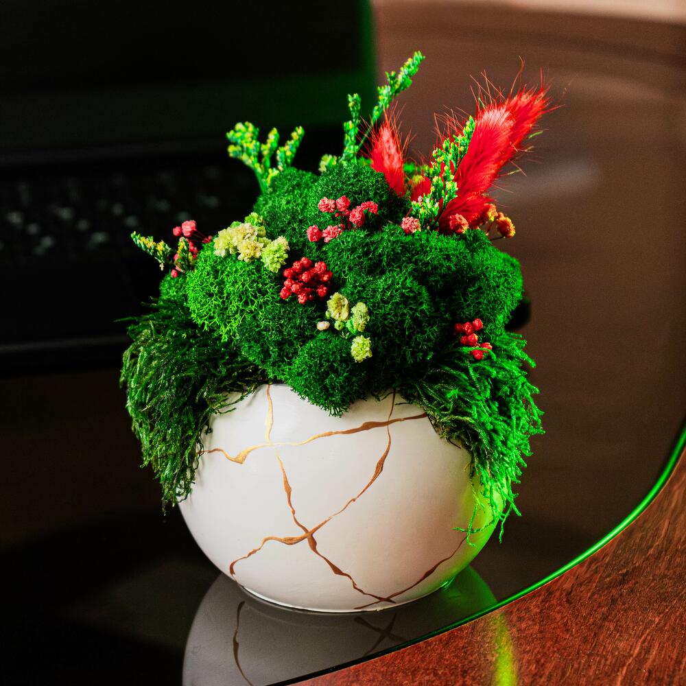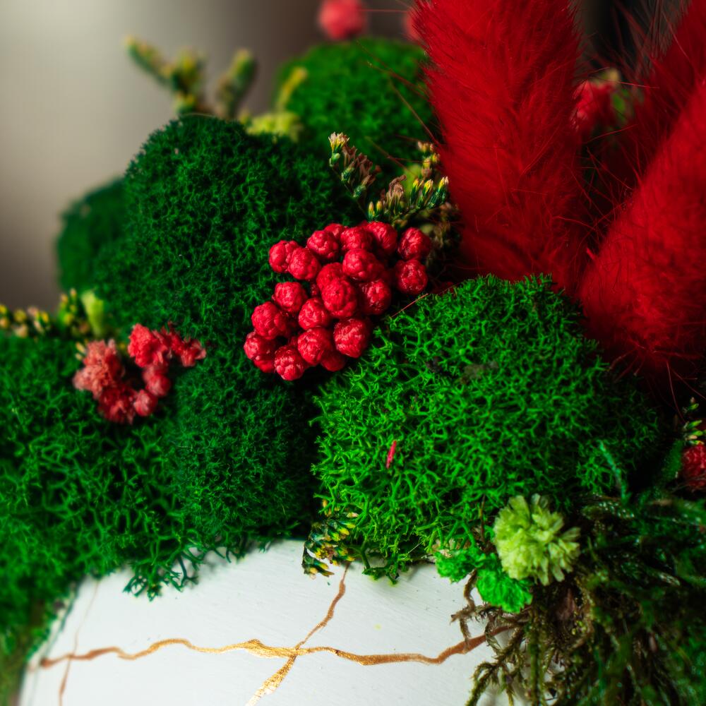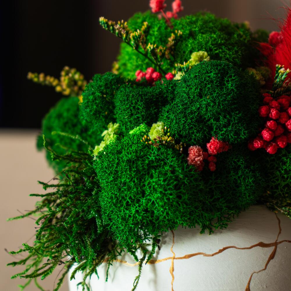 Кашпо со стабилизированным мхом и сухоцветами "FORESTA"
