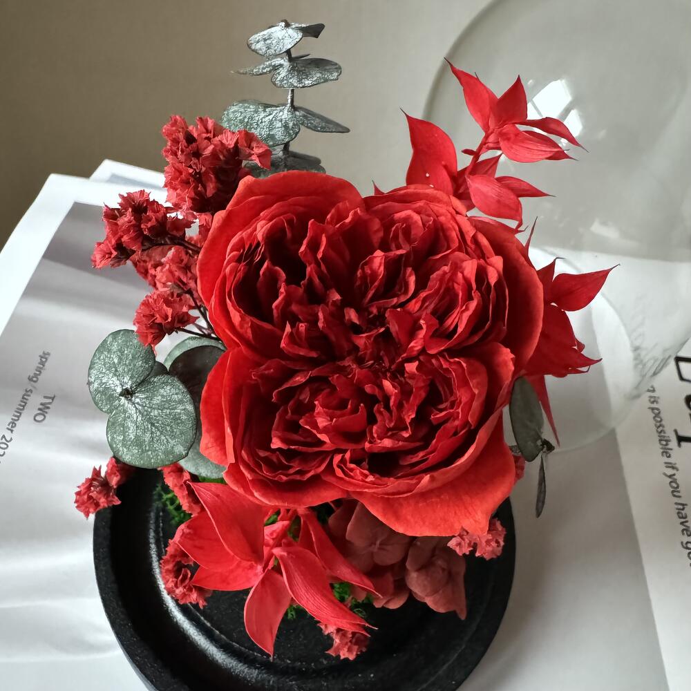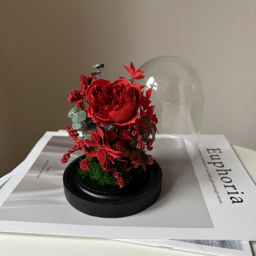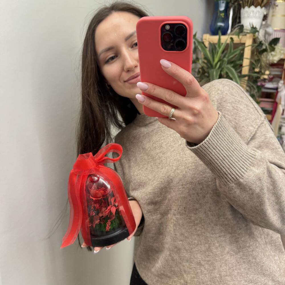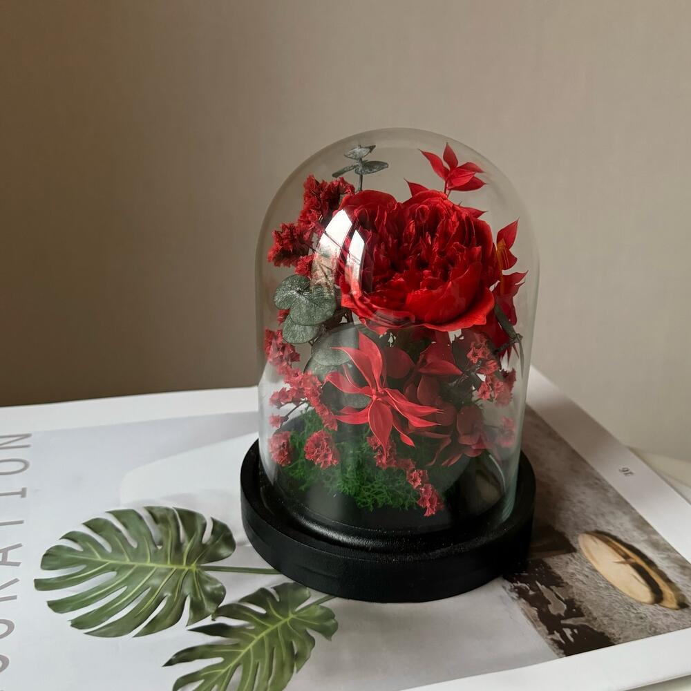 - Итерьерный клош с красной пионовидной стабилизированной розой среднего размера, иглицей, лимониумом и эвкалиптом украсит любой интерьер. - Станет отличным не обычным подарком по любому поводу. - Сохранит свой внешний вид не менее года. Роза в колбе только в современном виде: - натуральные цветы - не завянут - не нужна вода - минимальный уход Клош упакован в подарочный пакет и перевязан лентой. Инструкция по уходу и не большой вкусный презент идут в подарок.