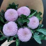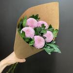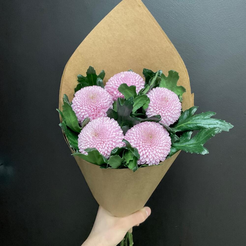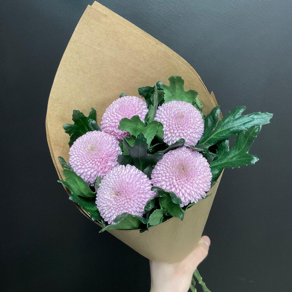 Хризантема - 5 шт. Крафт упаковка - 1 шт. Лента дизайнерская - 1 шт.