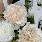 Хризантема кустовая - 2 шт. Диантус - 3 шт. Фисташка - 1 шт. Сумочка картонная - 1 шт.