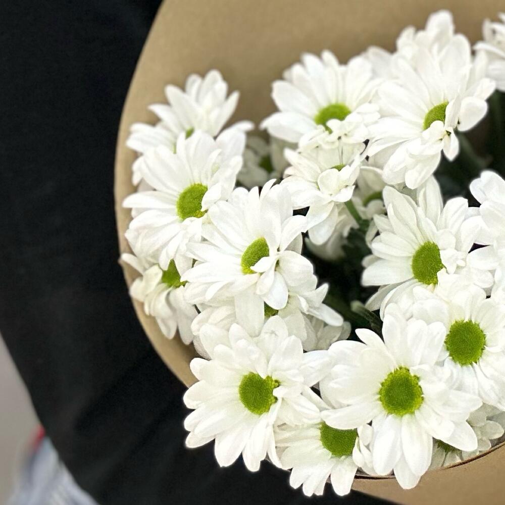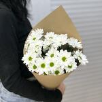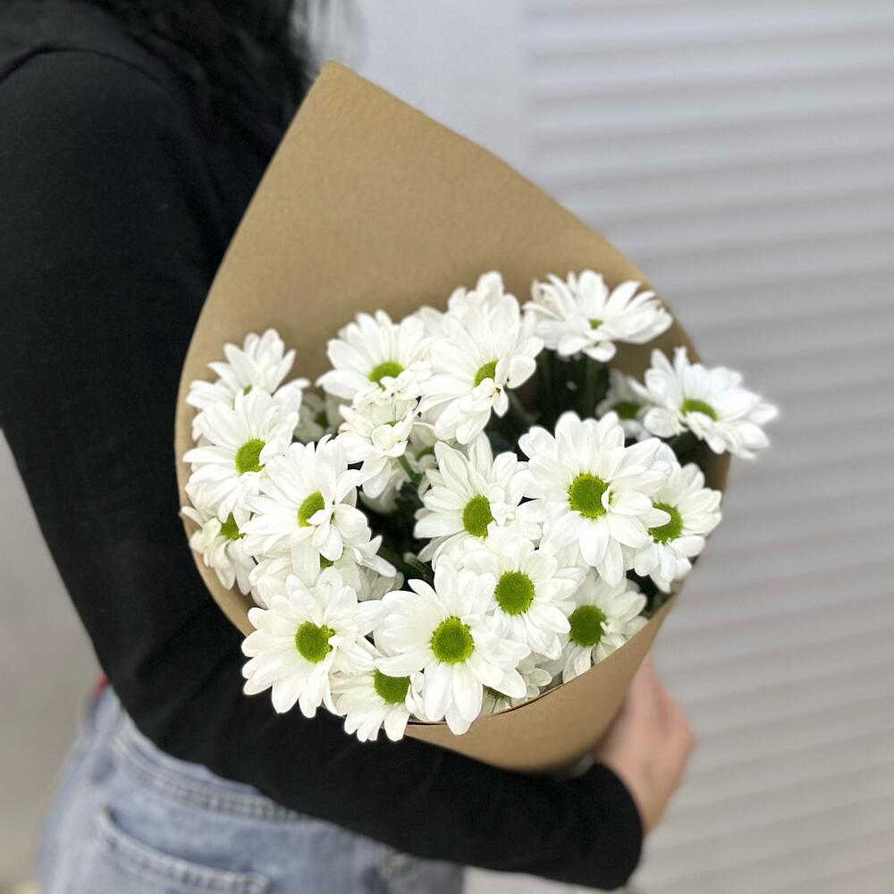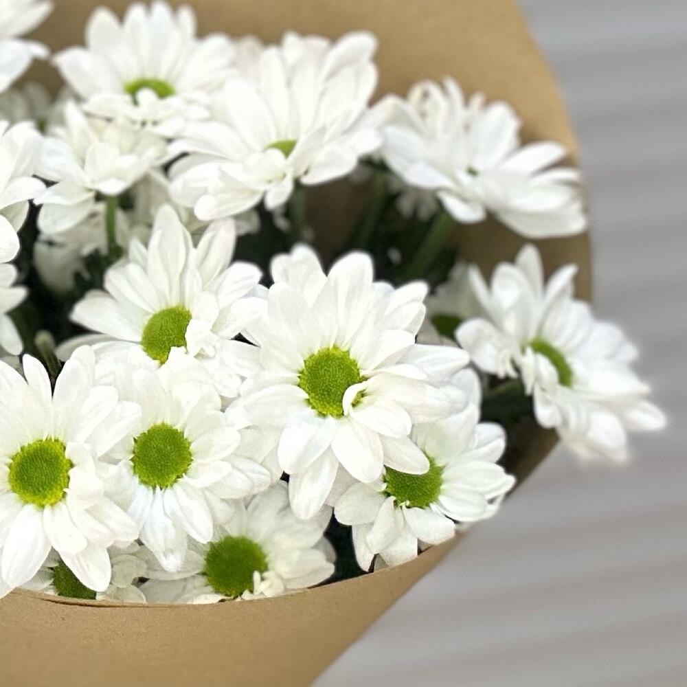 Хризантема кустовая - 3 шт. Лента атласная - 1 шт. Упаковка крафт - 1 шт.