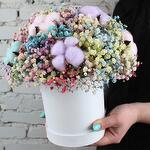 Композиция Гипсофила с хлопком в коробке