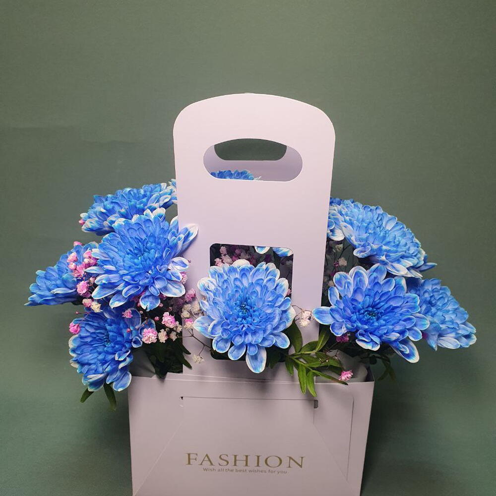 Гипсофила - 1 шт. Хризантема кустовая - 1 шт. Фисташка - 1 шт. Сумочка - 1 шт. Флористическая губка - 1 шт. инструкция по уходу за цветами - 1 шт. Пакетов Для Транспортировки Цветов - 1 шт.