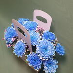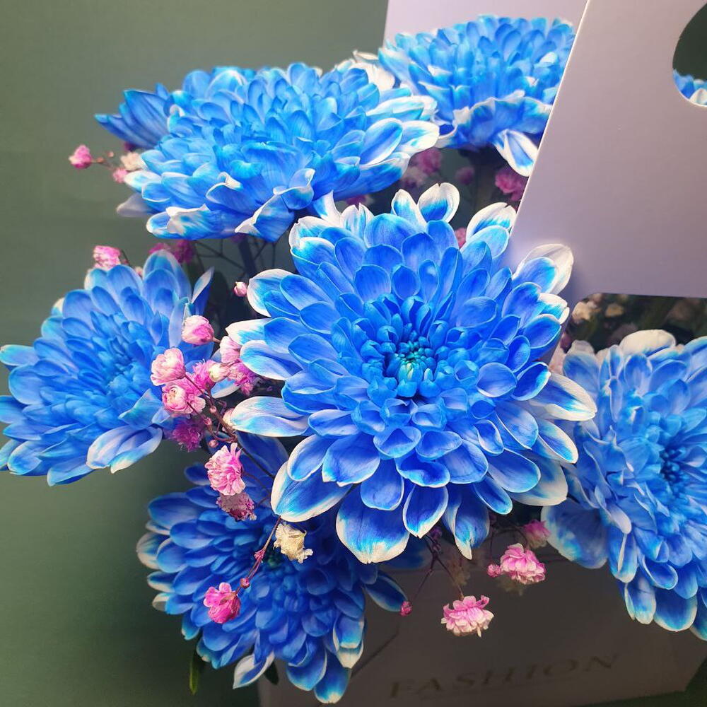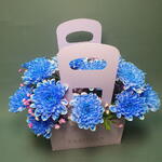 Композиция из кустовой хризантемы (синей) и гипсофилы