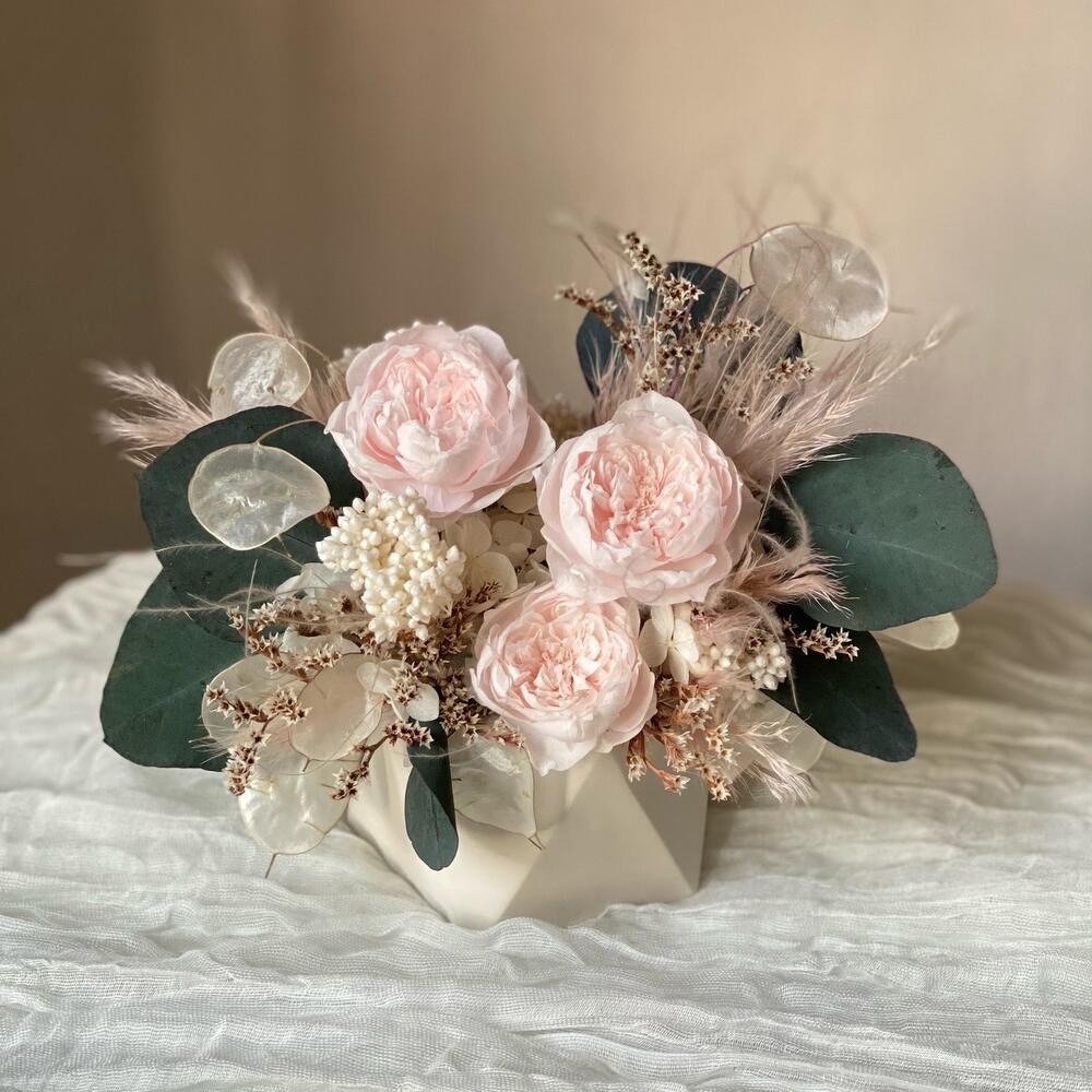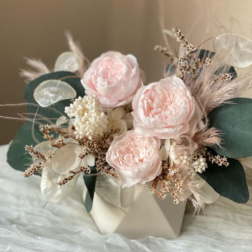 Нежная и воздушная композиция из стабилизированных пионовидных роз, эвкалипта и озотамнуса. Сухоцветов: лунарии, кермека, стифы и пампаса. Композиция собрана в лаконичном гипсовом кашпо геометрической формы. Поэтому она отлично впишется в современные интерьеры. Станет оригинальным подарком для женского пола любого возраста. Сухоцветы и стабилизированные цветы практически безуходны и очень долговечны. Являются безопасными для животных. Композиция как элемент флористического искусства собрана в единственном экземпляре и является поистине эксклюзивным декором. Композиция доставляется красиво упакованной, с инструкцией по уходу и не большим вкусным презентом.