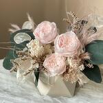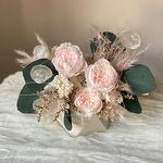 Кашпо - 1 шт. Кермек - 1 шт. Стифа - 5 шт. Лунария - 3 шт. Эвкалипт стабилизированный - 3 шт. гортензия стабилизированная - 1 шт. пампас - 1 шт. озотамнус стабилизированный - 4 шт. оазис сухоцвет - 1 шт. роза пионовидная светло-розовая стабилизированная - 3 шт.