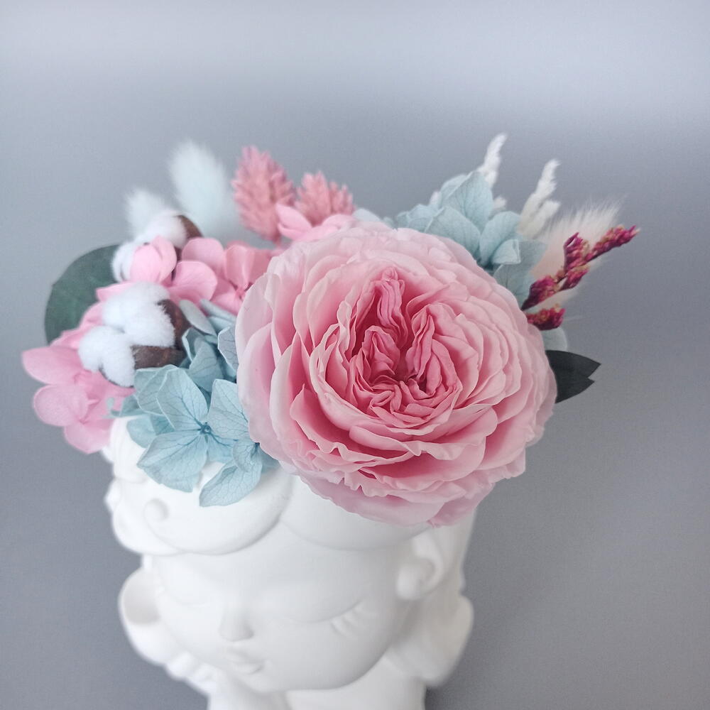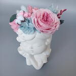 Композиция из стабилизированных цветов с розой и гортензией, букет в подарок девушке, жене