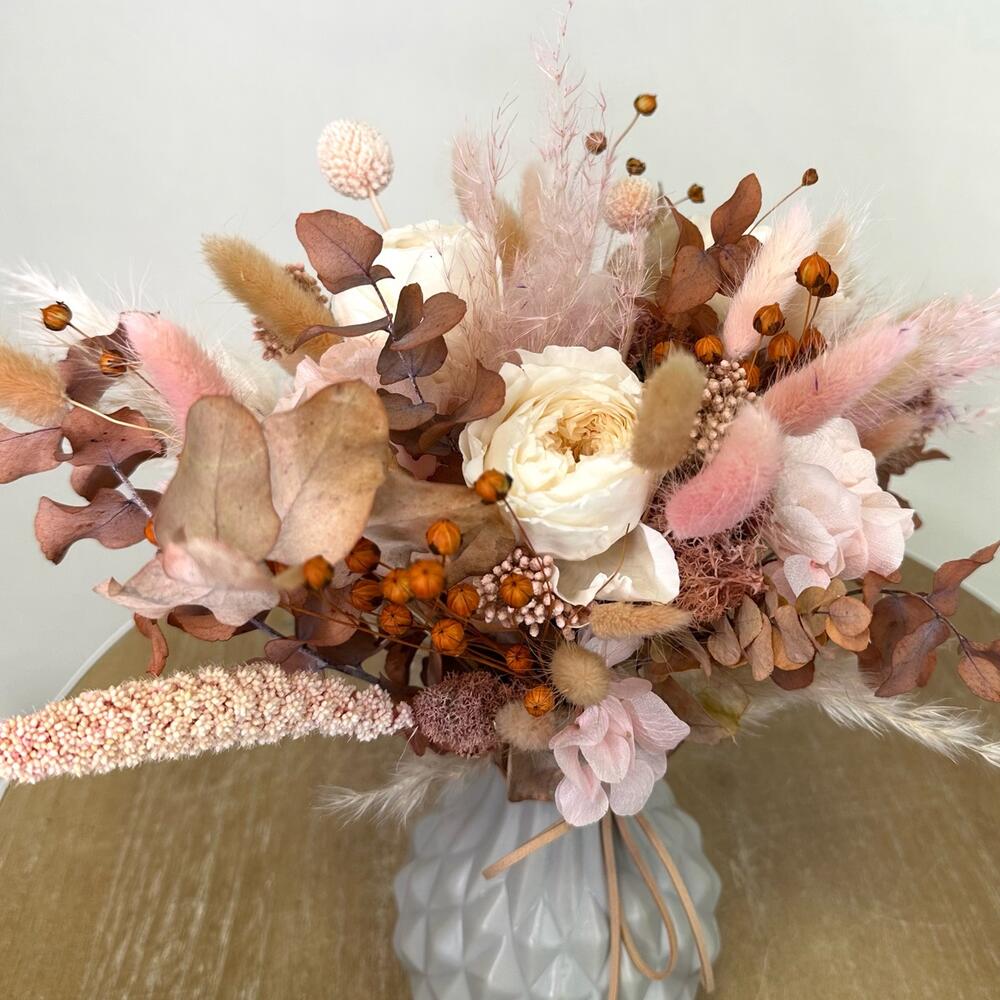 Композиция из стабилизированных цветов и сухоцветов «Карамель»