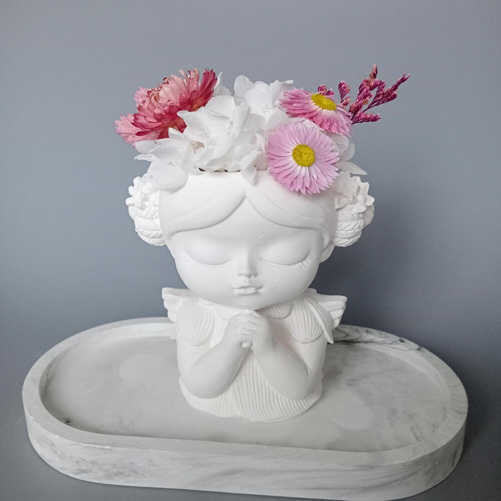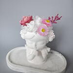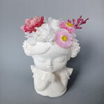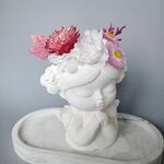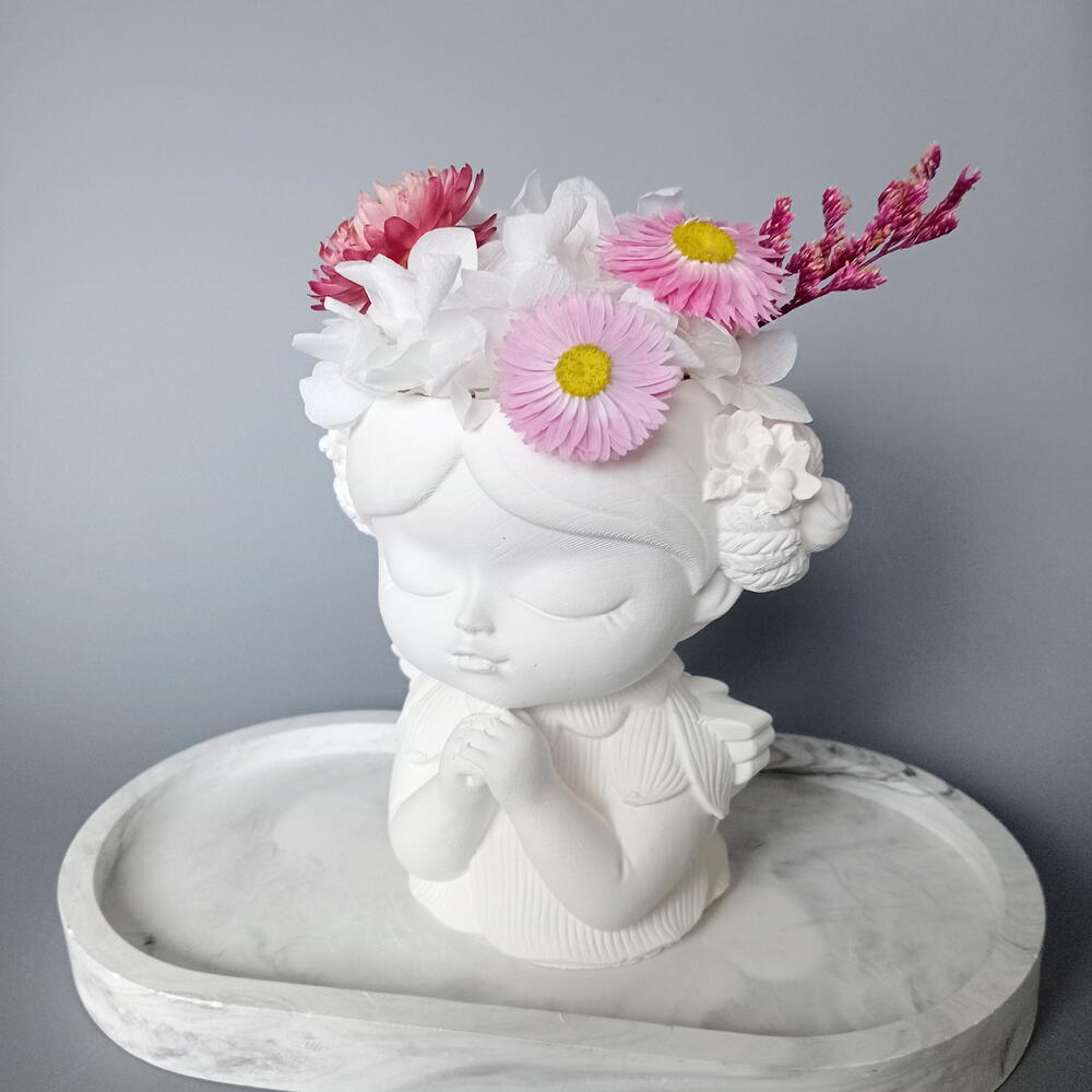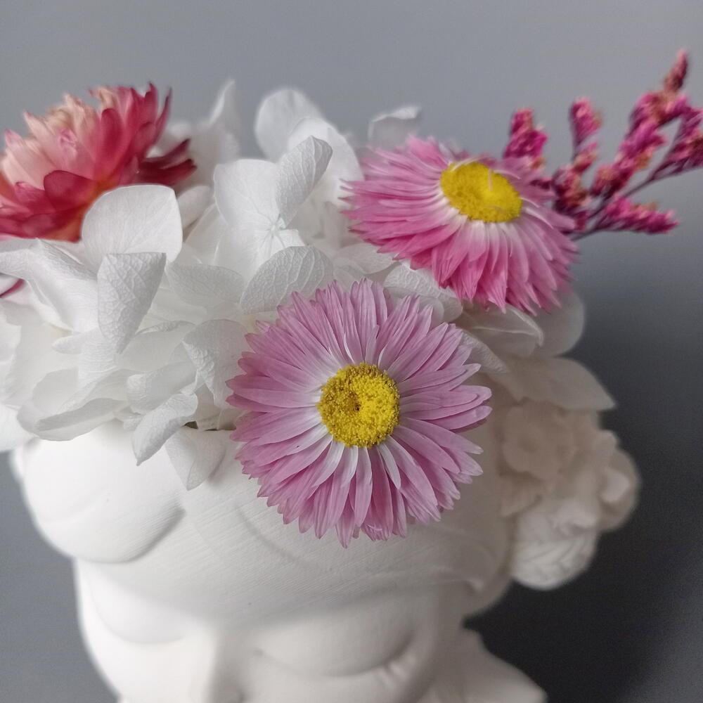 фаларис сухоцвет - 2 шт. гелихризум сухоцвет - 1 шт. гортензия стабилизированная пучок - 1 шт. гелиптерум сухоцвет - 2 шт. кермек стабилизированный ветка - 1 шт. кашпо гипс ручной работы - 1 шт.