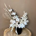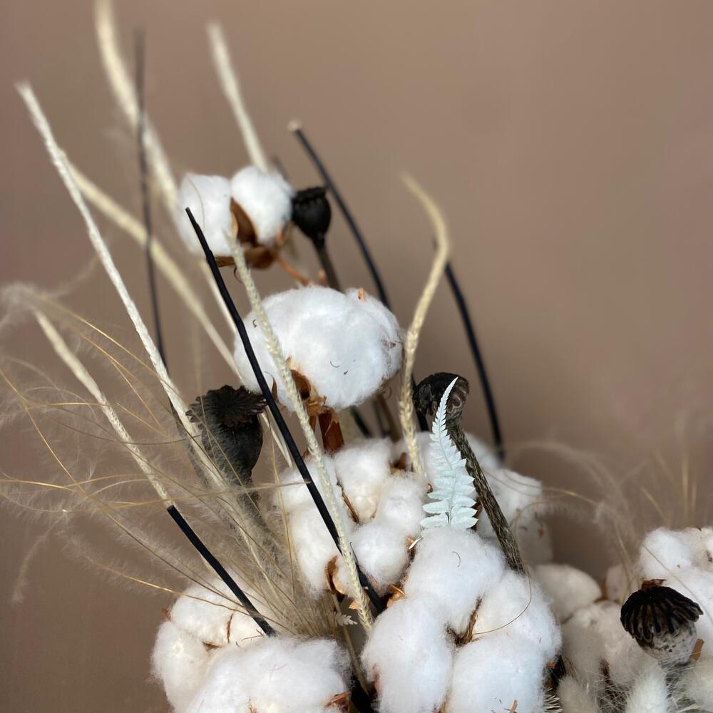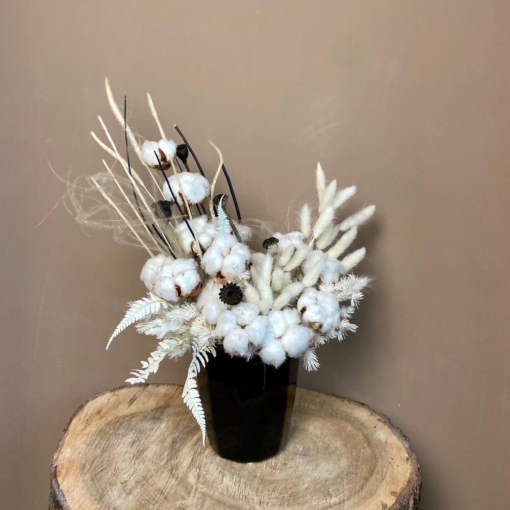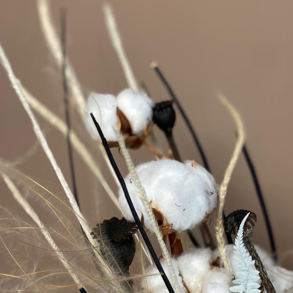 Композиция из сухоцветов с хлопком в чёрном кашпо