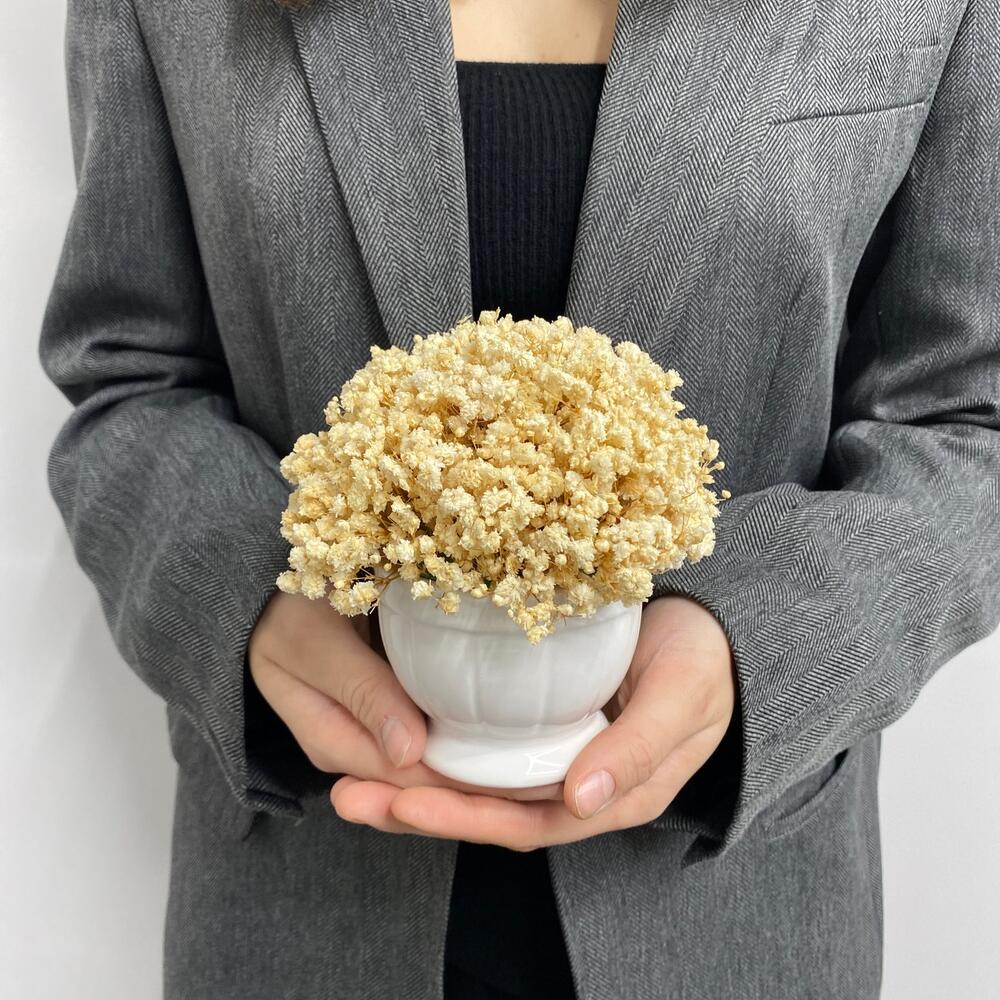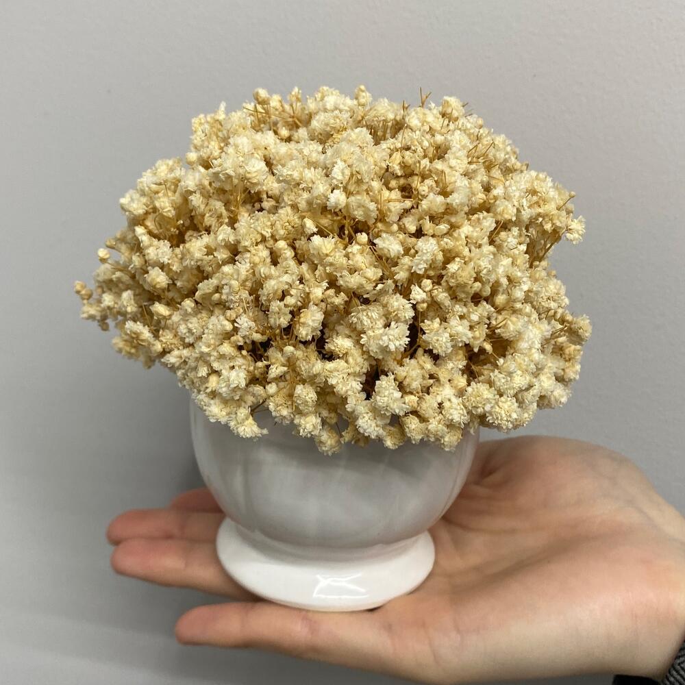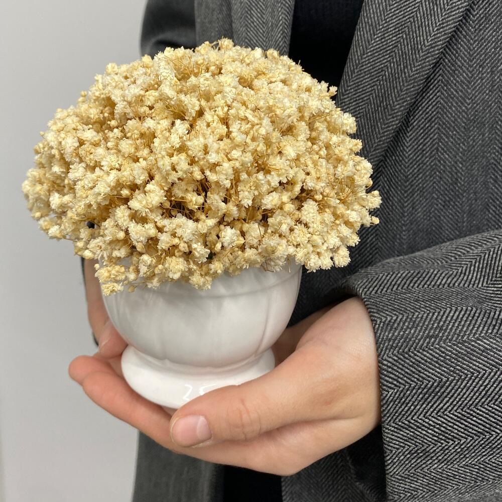 Кашпо керамическое - 1 шт. гипсофила стабилизированная - 3 шт. губка для сухоцветов - 1 шт.