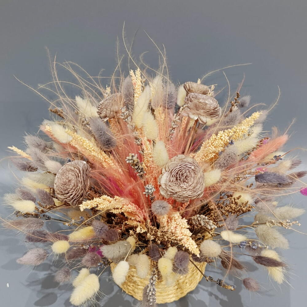 лагурус пучок - 1 шт. лимониум ветка - 1 шт. декоративный цветок - 3 шт. ковыль связка - 1 шт. лаванда связка - 1 шт. булгур пучок - 1 шт. декоративная основа ручной работы - 1 шт.