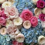 Композиция с пионовидными розами и гортензиями
