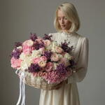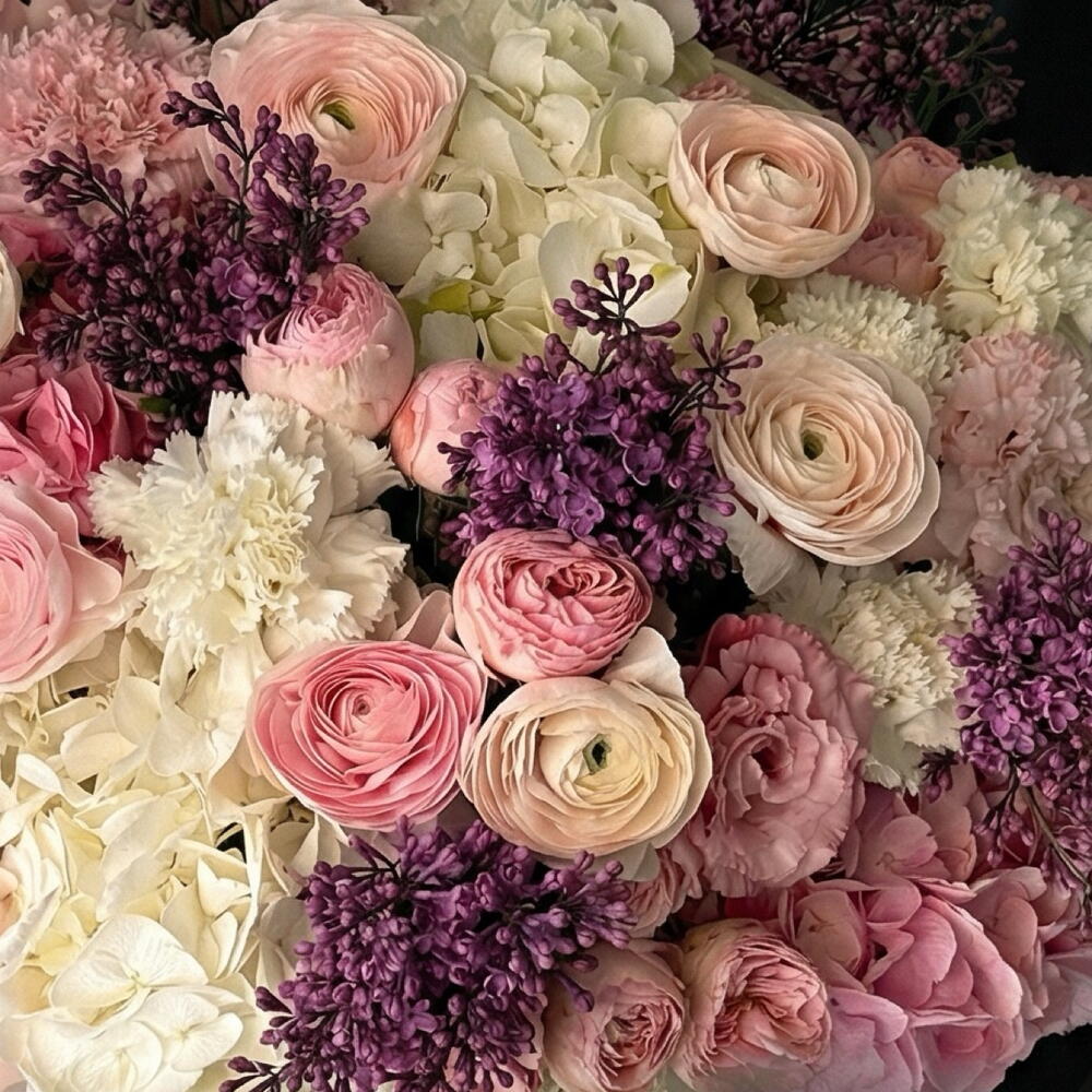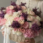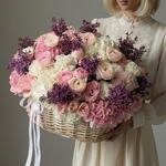 Шикарная корзина с ароматной сиренью, гортензия, пионовидными розами и ранункулюсами.  Поможет передать ваши самые искренние чувства и выразить любовь.