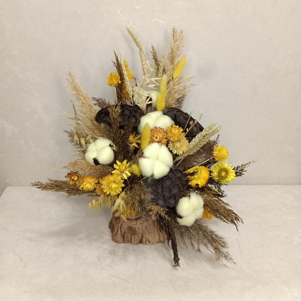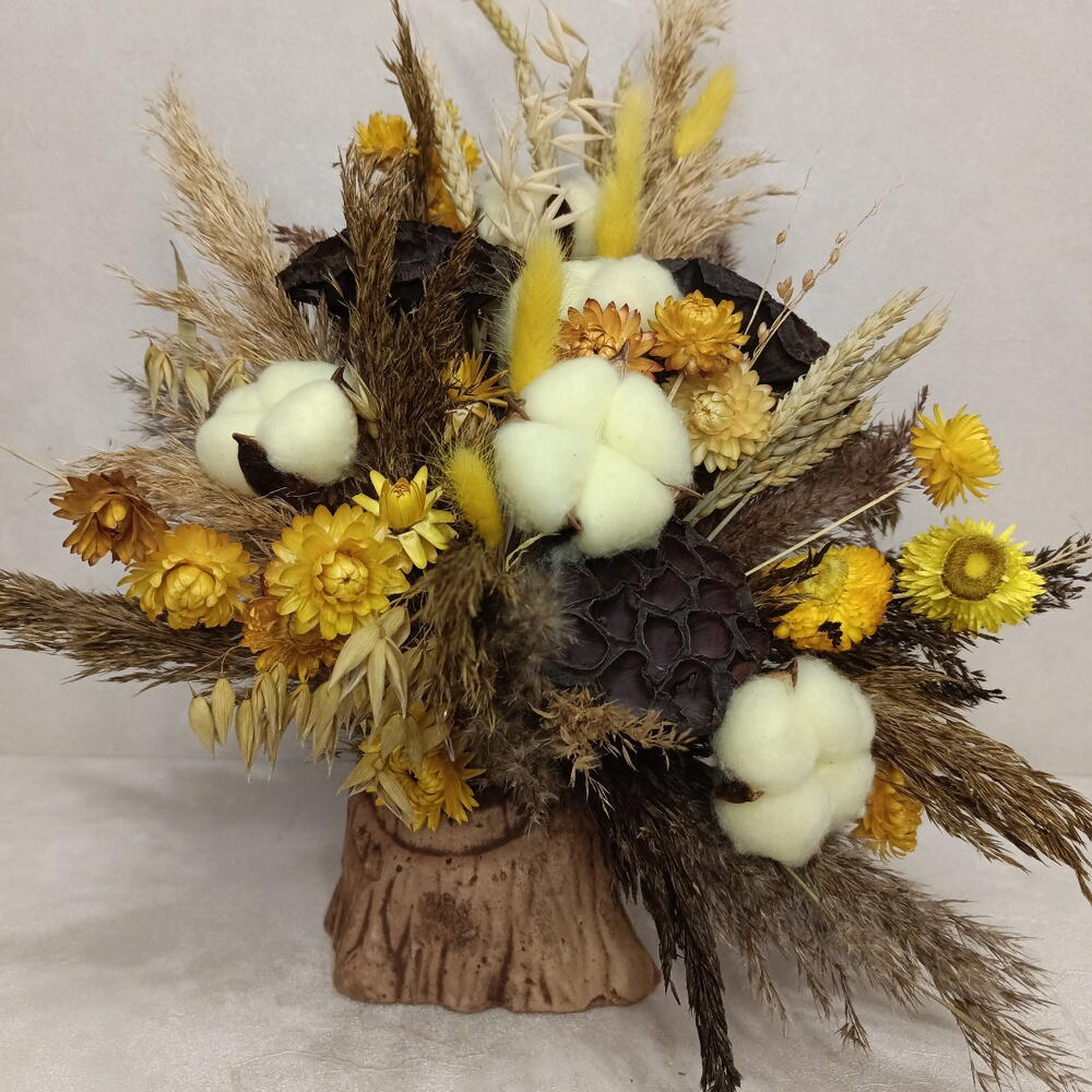 Композиция с сухоцветами в керамическом кашпо " Медовое настроение"