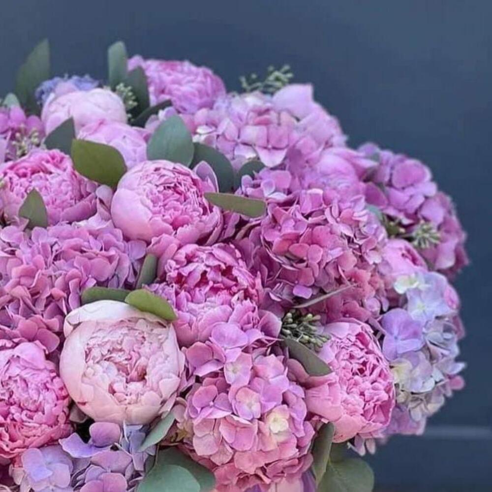 Пионы и гортензии в коробке