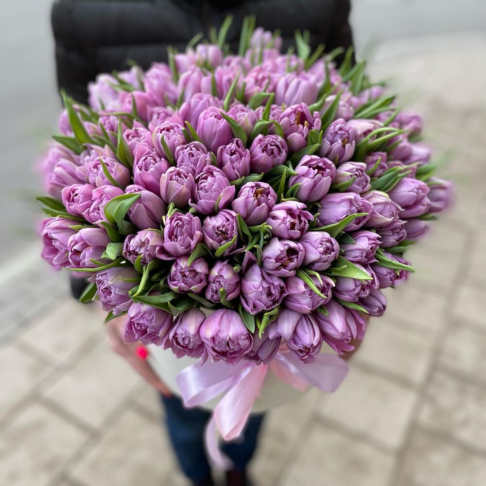 Коробочка 101 пионовидный тюльпан великолепный и эффектный подарок
