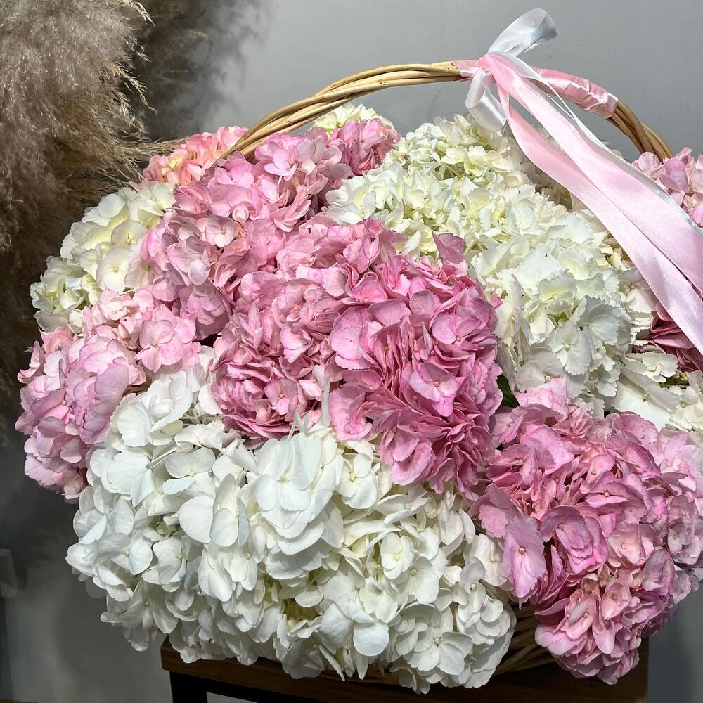 Привнесите в ваш дом атмосферу нежности и весеннего великолепия с нашей эксклюзивной композицией из 15 гортензий в изящных розовых и белых тонах. Это идеальное сочетание цветов идеально подойдёт для декора любого интерьера, создания романтической атмосферы или оформления праздников. Каждая гортензия олицетворяет утонченность и стиль, добавляя мягкость и гармонию в любое пространство. Цветы отлично подойдут для подарка на день рождения, юбилей или просто как знак внимания для дорогих вам людей. Не упустите возможность заказать эту великолепную композицию из 15 нежных гортензий прямо сейчас и создайте уникальную атмосферу уюта и красоты в вашем доме! Эта комрлзициястанет настоящим произведением искусства, которое порадует глаз и душу.
