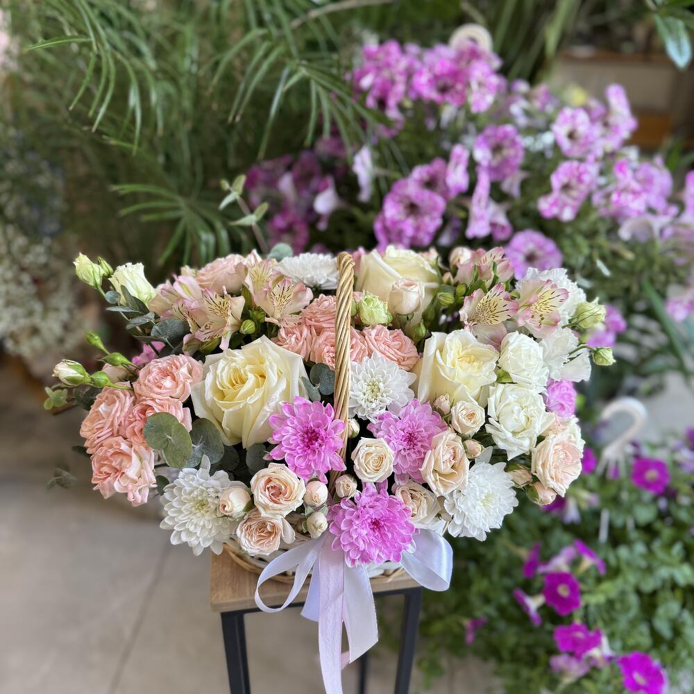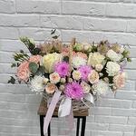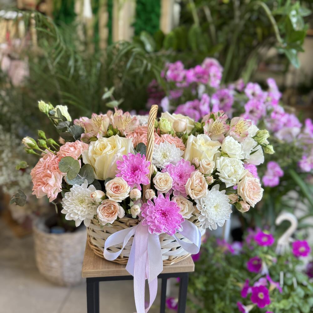 Нежная корзина с цветами🌸 в светло-розовых оттенках.