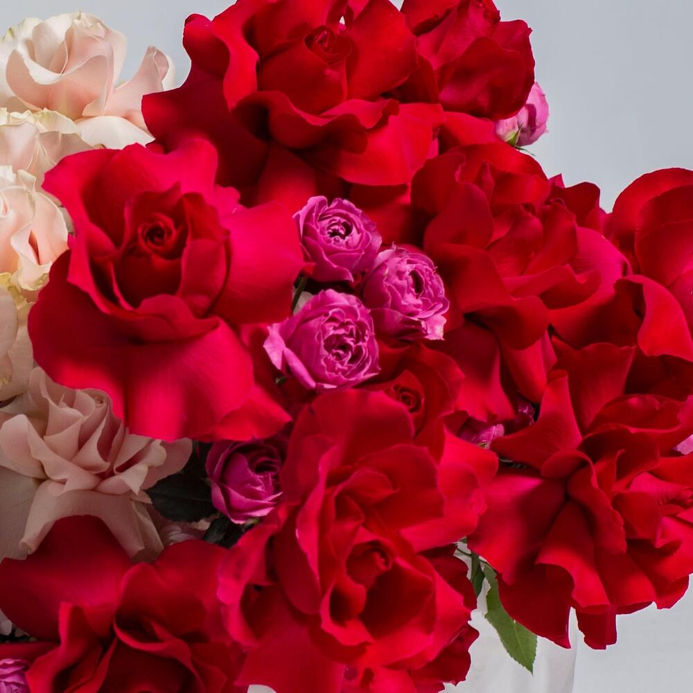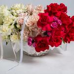 Яркая, страстная композиция из кружевных и пионовидных роз