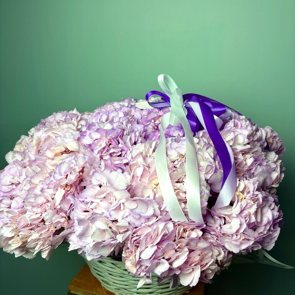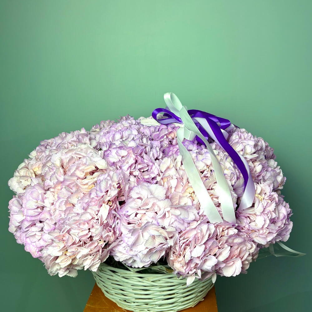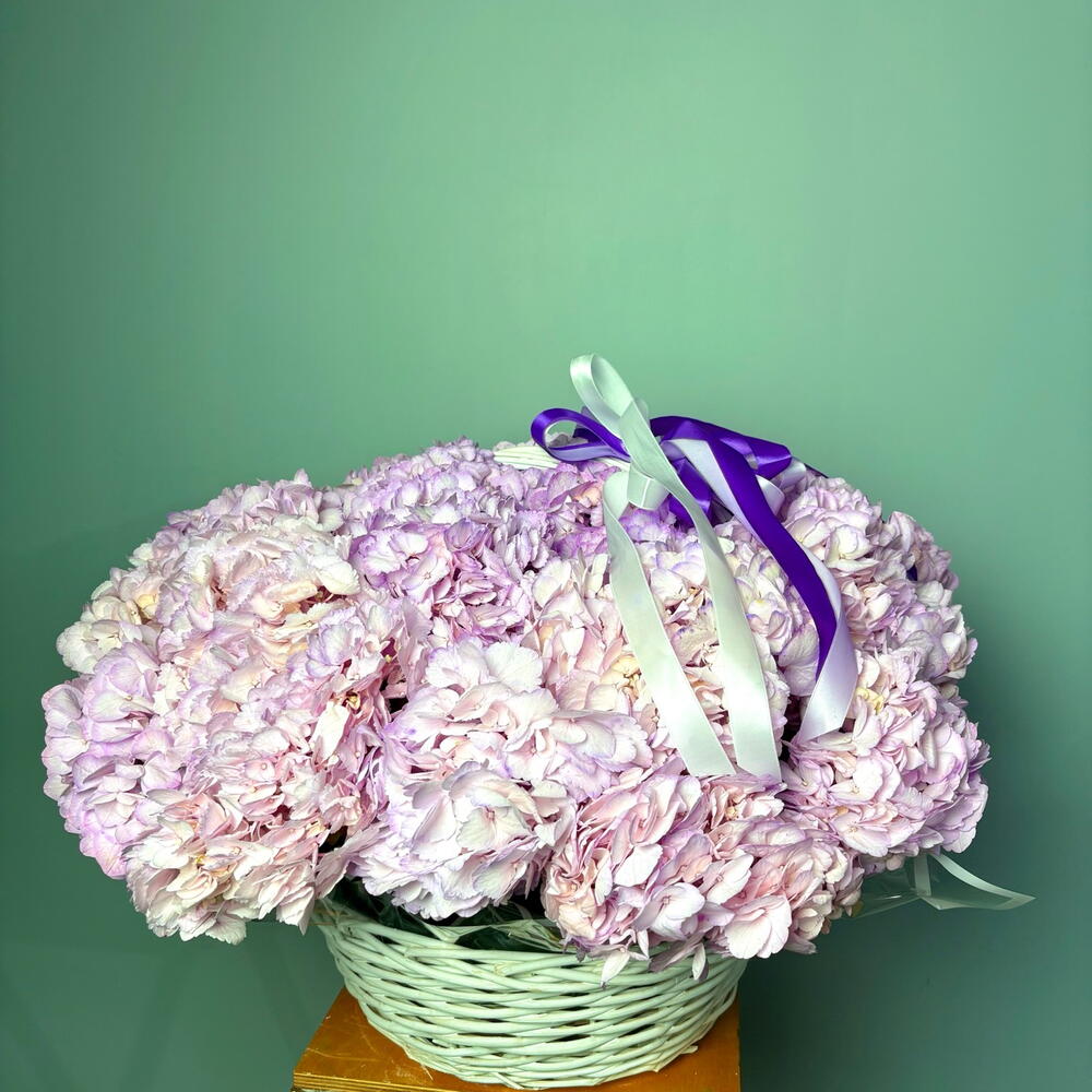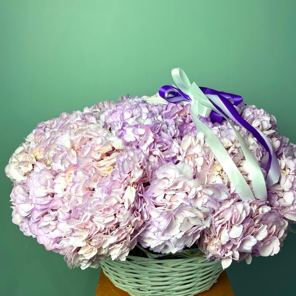 Гортензия - 23 шт. Корзина плетеная - 1 шт. Оазис флористический - 3 шт.