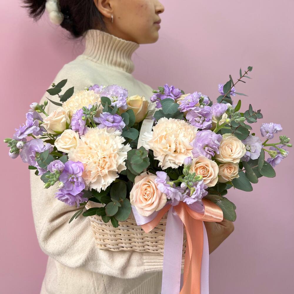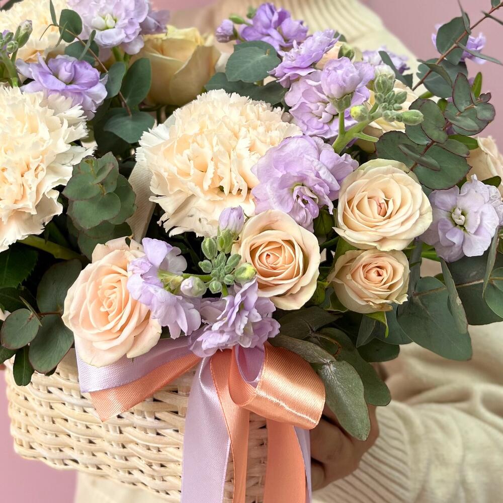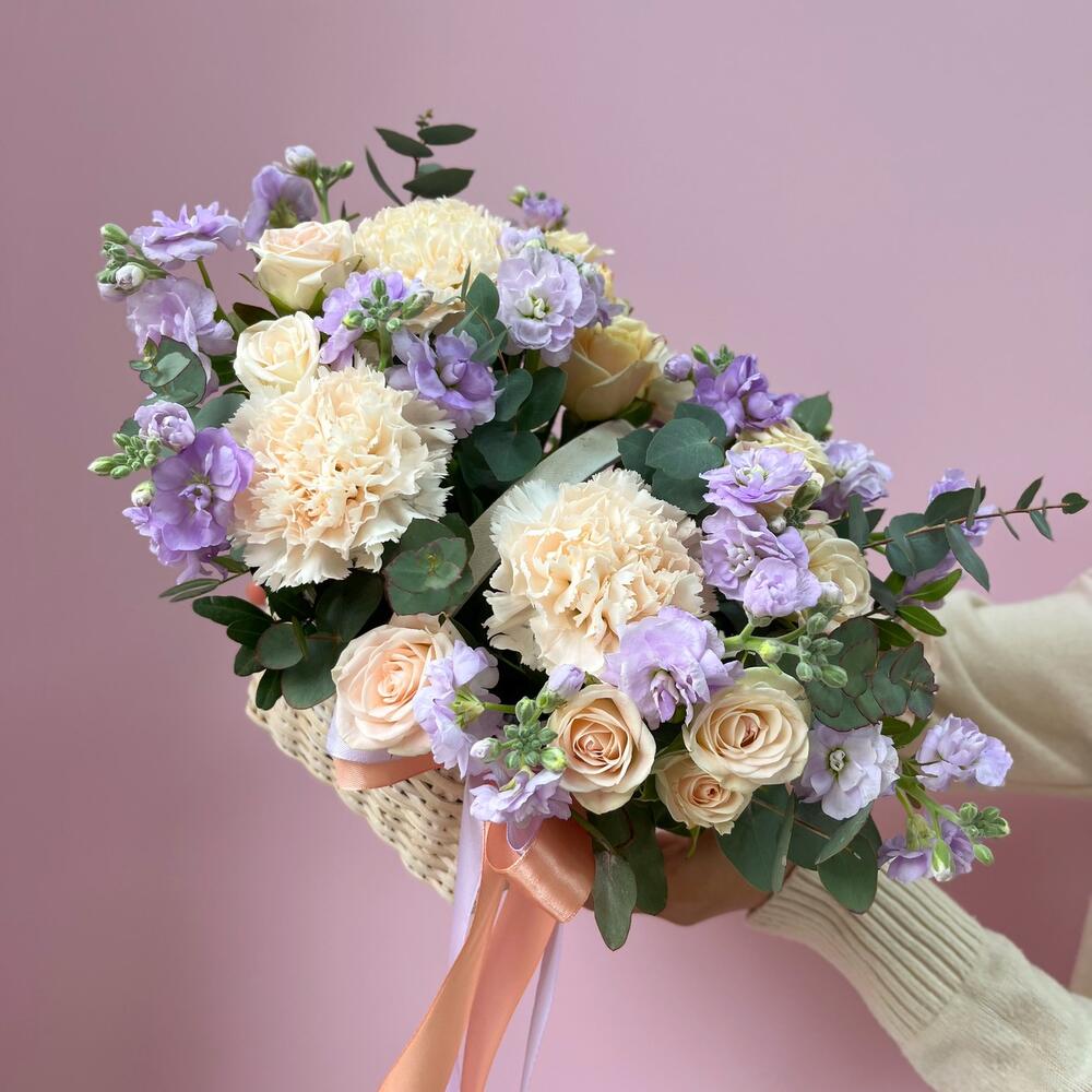 Корзина с цветами сливочно-лавандовое чудо 🤩🫶🏻 в пастэльных оттенках 💕