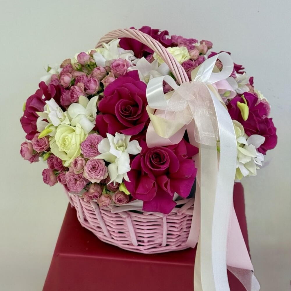 Кустовая роза - 10 шт. Российская роза - 9 шт. Эквадор - 7 шт. дендобиум - 8 шт.