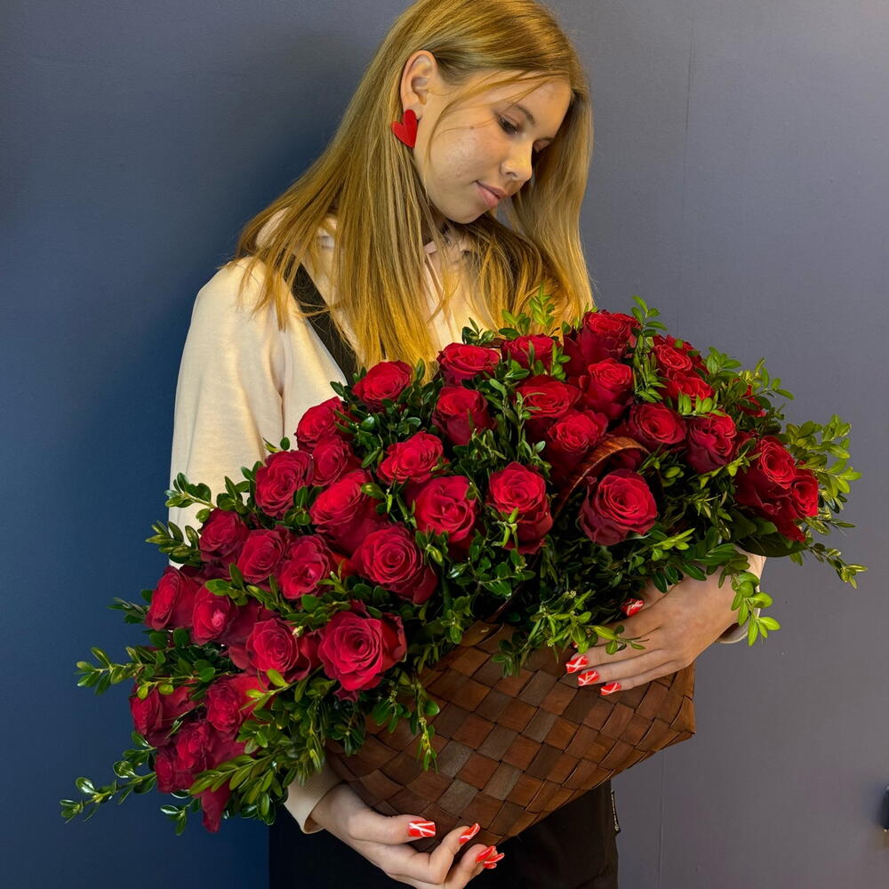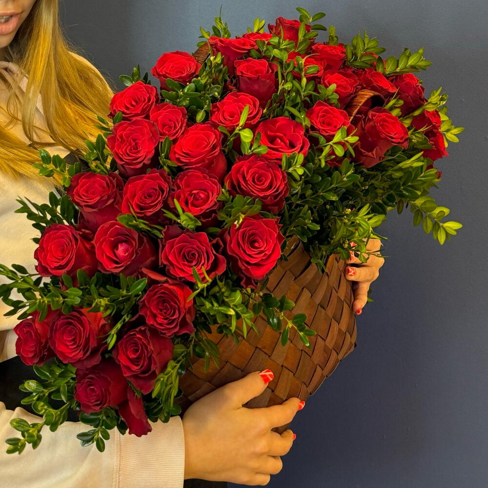 Корзина с красными розами