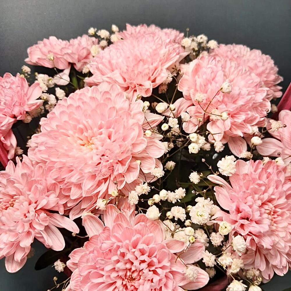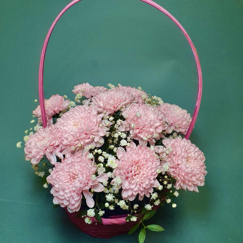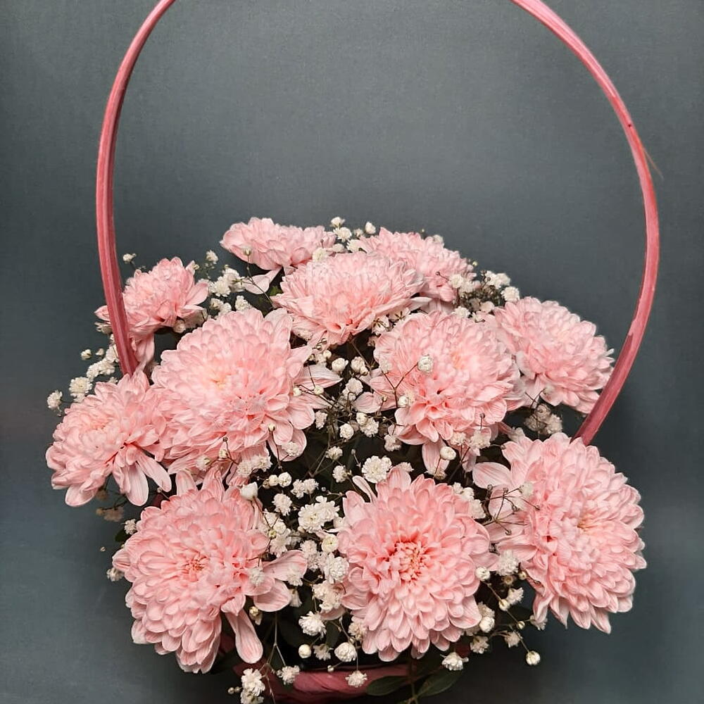 Хризантема в корзинке дополнительно наполненная гипсофилой и фисташкой на флористической губке пропитанной водой, очень удобный вариант для подарка, так как не требует вазы с водой, можно подарить и не переживать за цветы. Корзинка светло розового цвета, хризантема -розовая. Принимаем корпоративные заказы, условия, сроки изготовления и количество - обсуждаем в чате. Пишите. Уход за корзинкой: - если дома достаточно сухой воздух, доливать водичку в флористическую губку каждый день по немножку, по всему периметру губки. Оформляйте заказы заранее, что бы быть уверенными, что вашем заказе будут самые лучшие и свежие цветы! Принимаем заказы на корпоративные заказы, дату готовности и необходимое количество обсуждаем в чате, всё будет готово вовремя ✅. Радуйте своих любимых необычными композициями. С уважением, Цветов Букеты.
