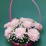 Гипсофила - 1 шт. Хризантема кустовая - 1 шт. Оазис - 1 шт. Фисташка - 1 шт. инструкция по уходу за цветами - 1 шт. корзинка - 1 шт. Пакетов Для Транспортировки Цветов - 1 шт.