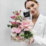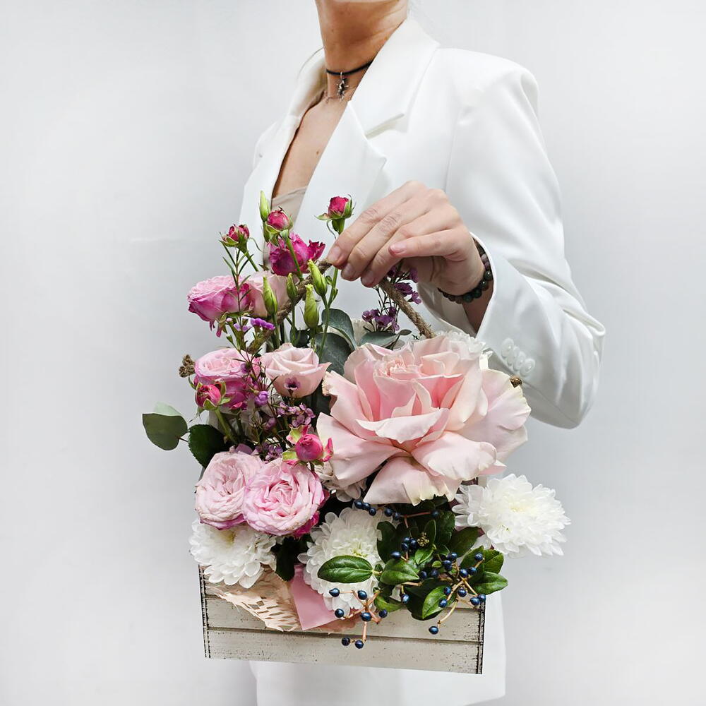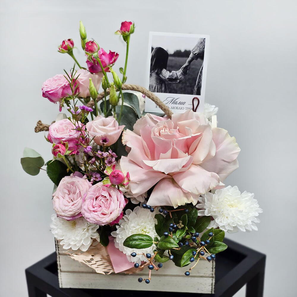 Цветы французские розы Красивый ящик с цветами Маме