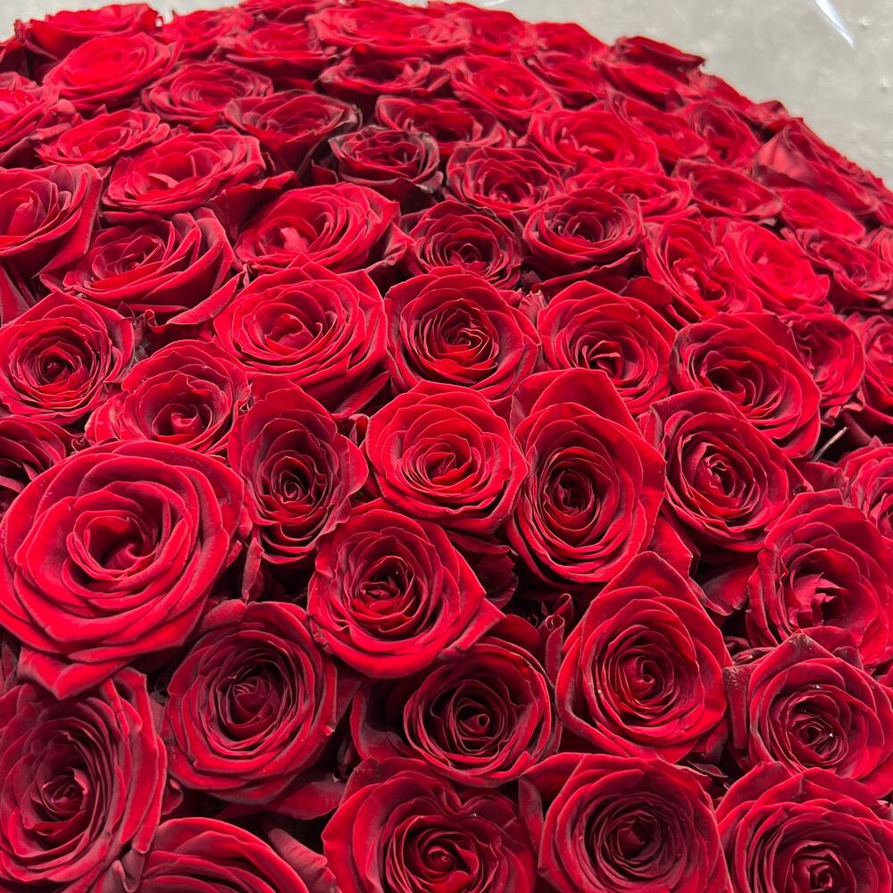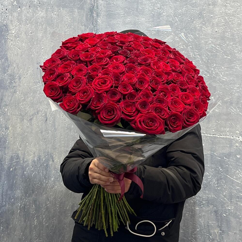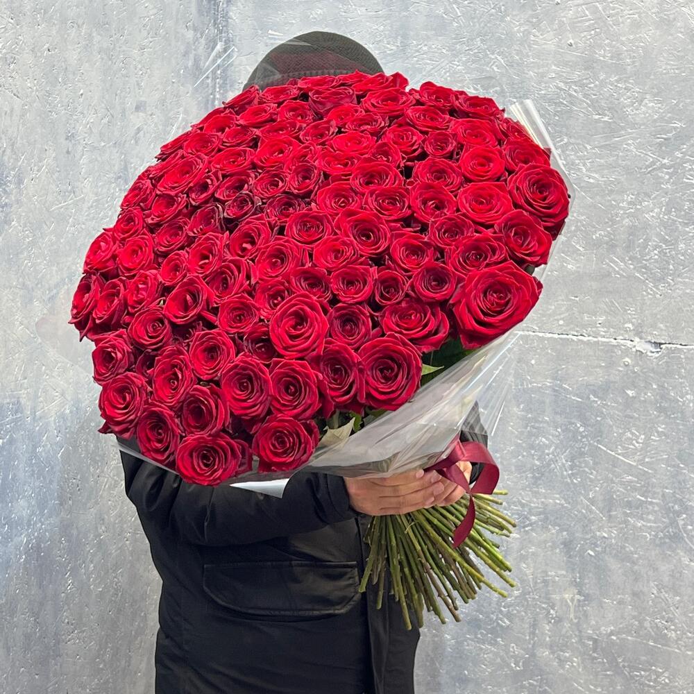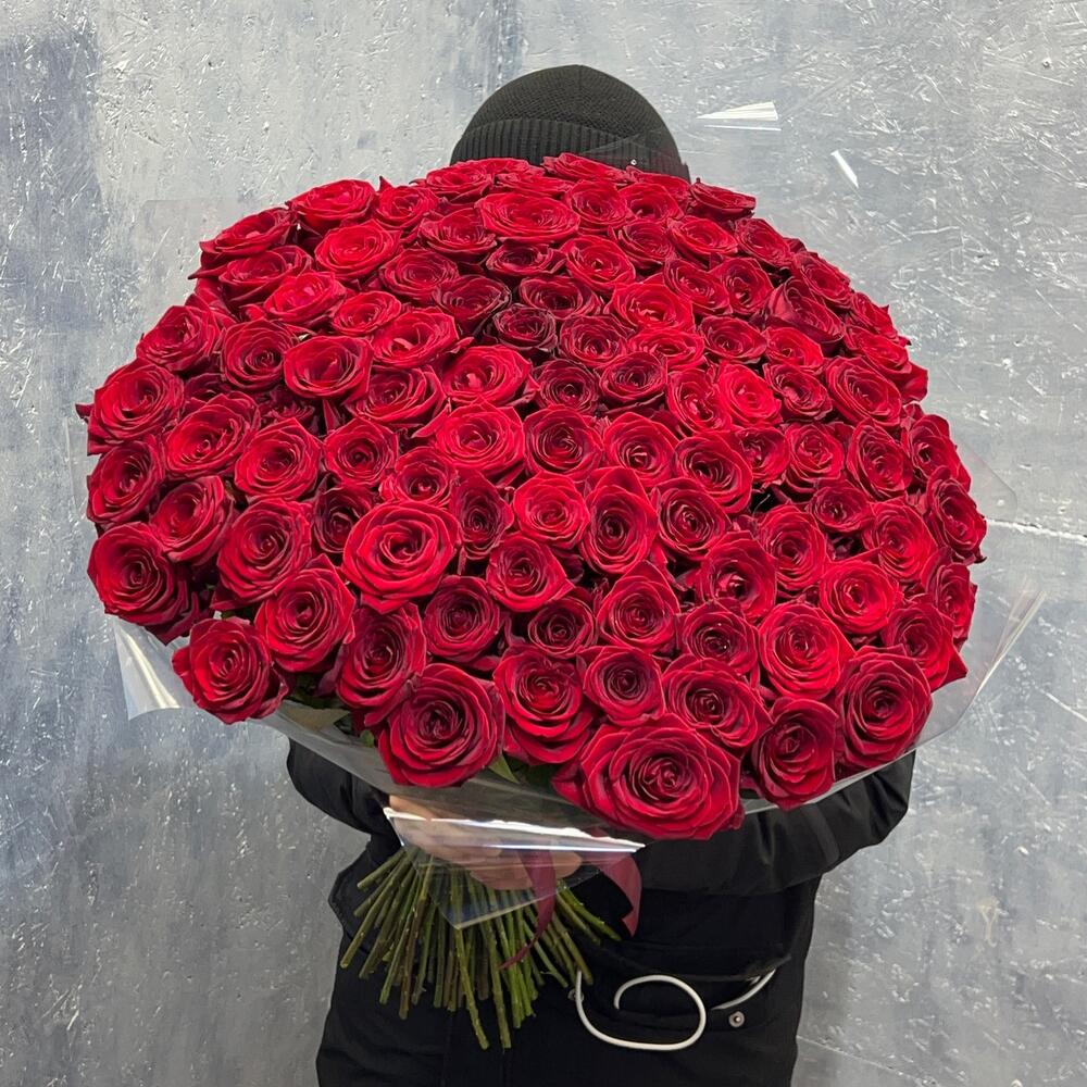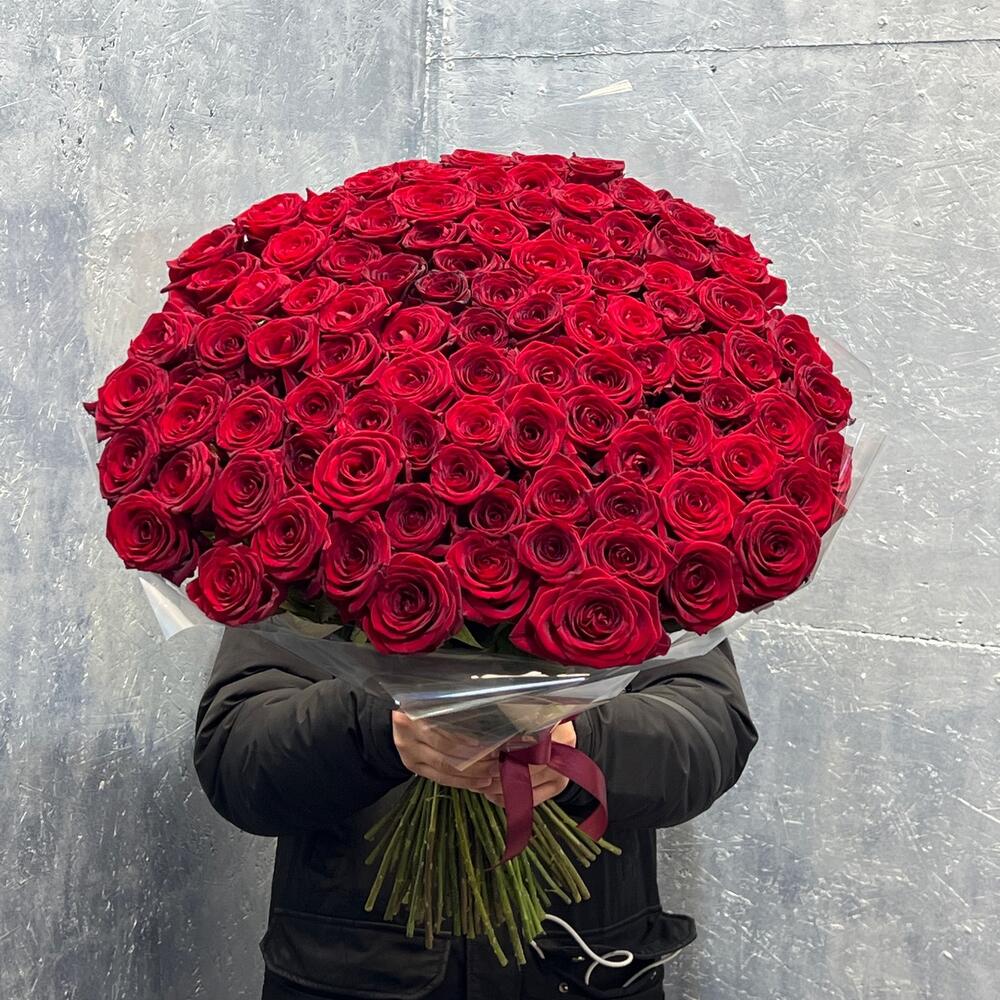 Атласная лента - 1 шт. Красная роза - 101 шт.