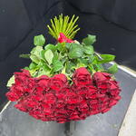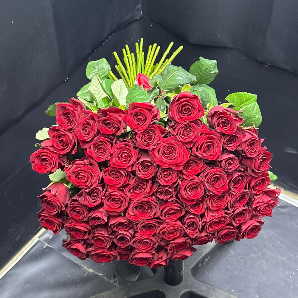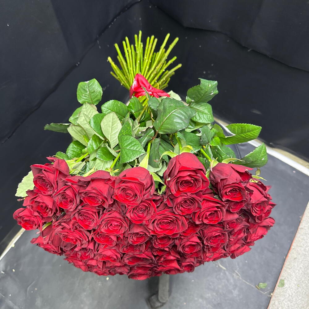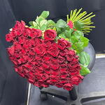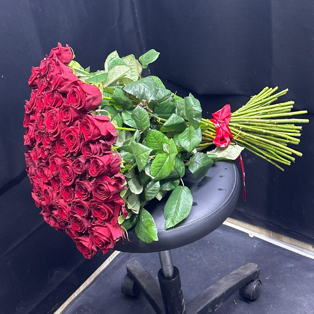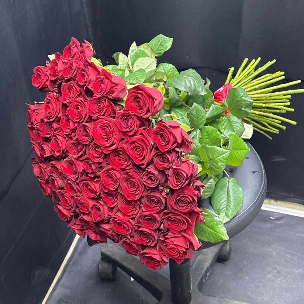 Лента атласная - 1 шт. Открыточка с вашими пожеланиями - 1 шт. роза ред ноами - 61 шт.