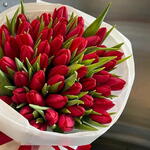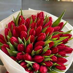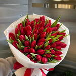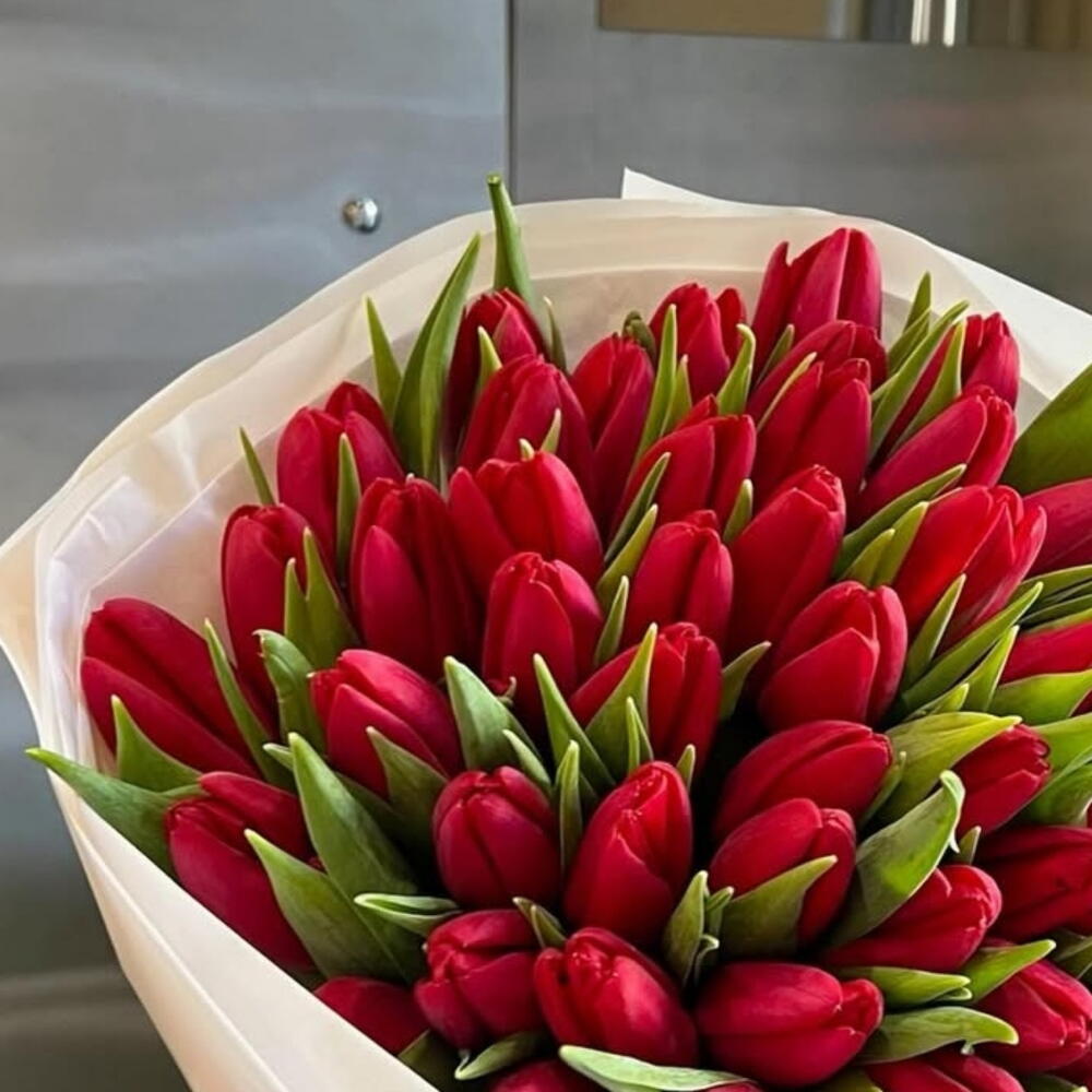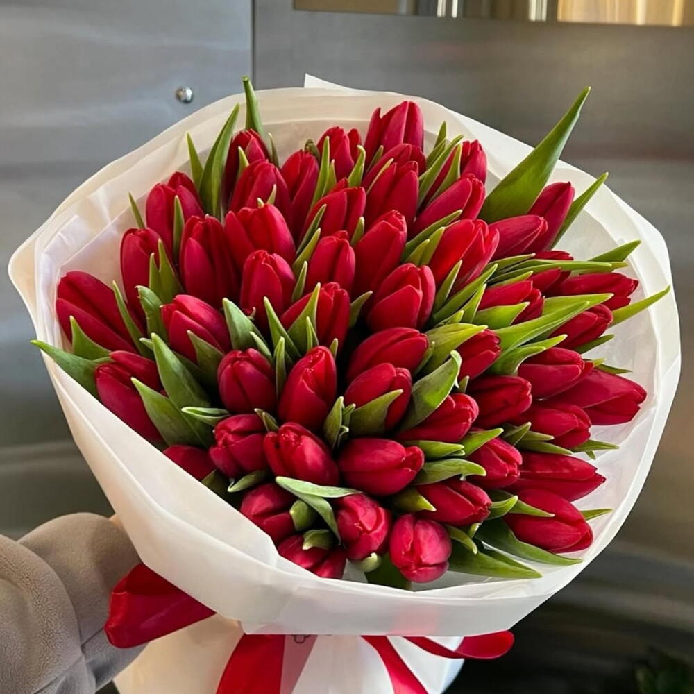 Наши преимущества * Личный менеджер, который курирует заказ от начала до вручения * Согласование фото букета перед отправкой и возможность внести изменения по вашему желанию * Дополнительные подарки — сладости, шары, помощь в организации сюрпризов * Красивая упаковка, аквабокс и поздравительная открытка — бесплатно Прекрасный свежий букет из нежных красных тюльпанов в дизайнерской упаковке с быстрой доставкой по городу в течение часа — отличный способ порадовать близкого человека, устроив сюрприз. Такой букет подойдёт ✓ Для любимой девушки или супруги ✓ Для мамы или родных ✓ Для подруги или коллеги на 8 марта или 14 феврал ✓ Для свадебных торжеств и юбилеев