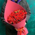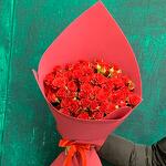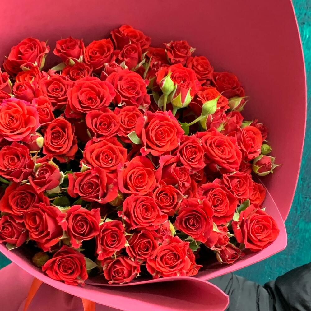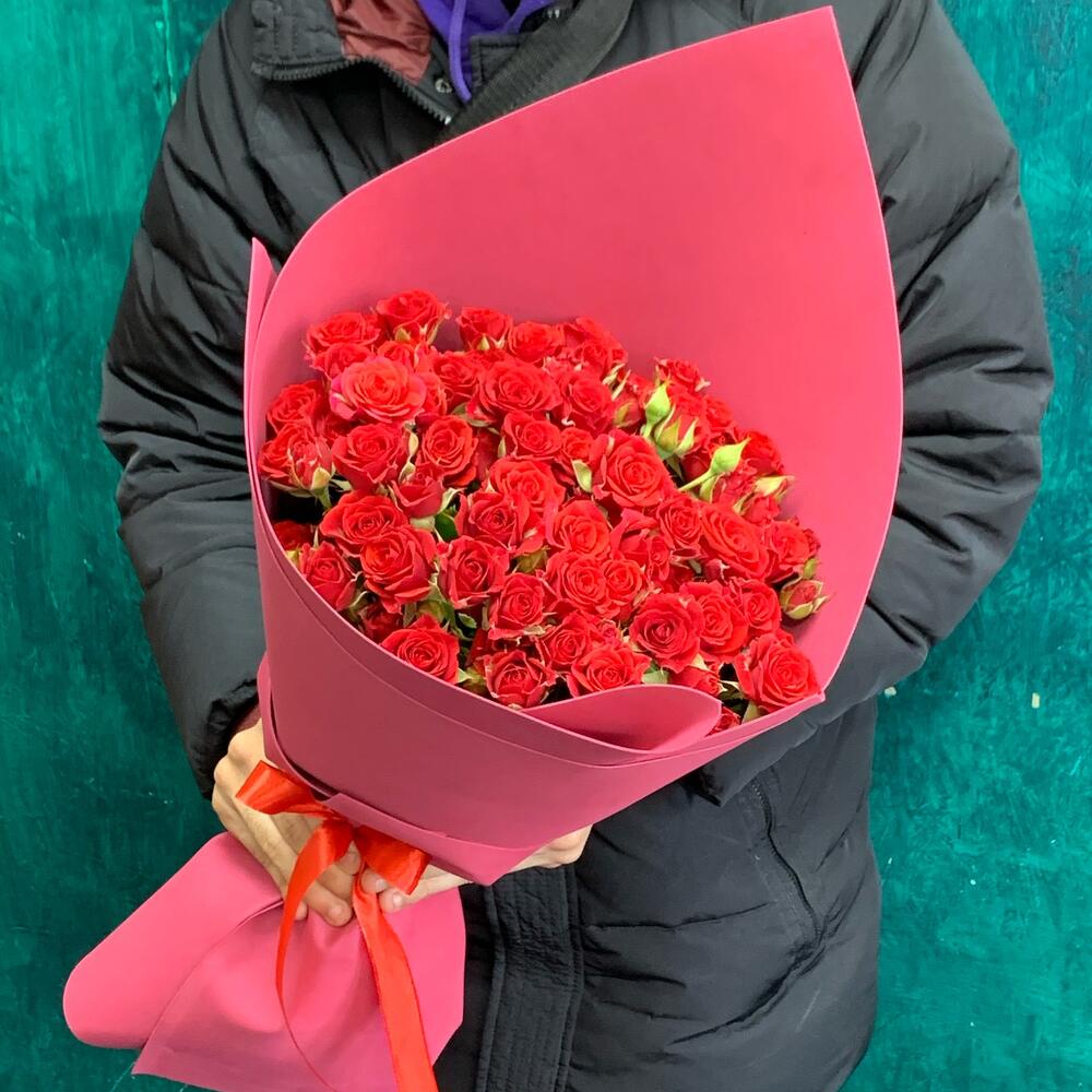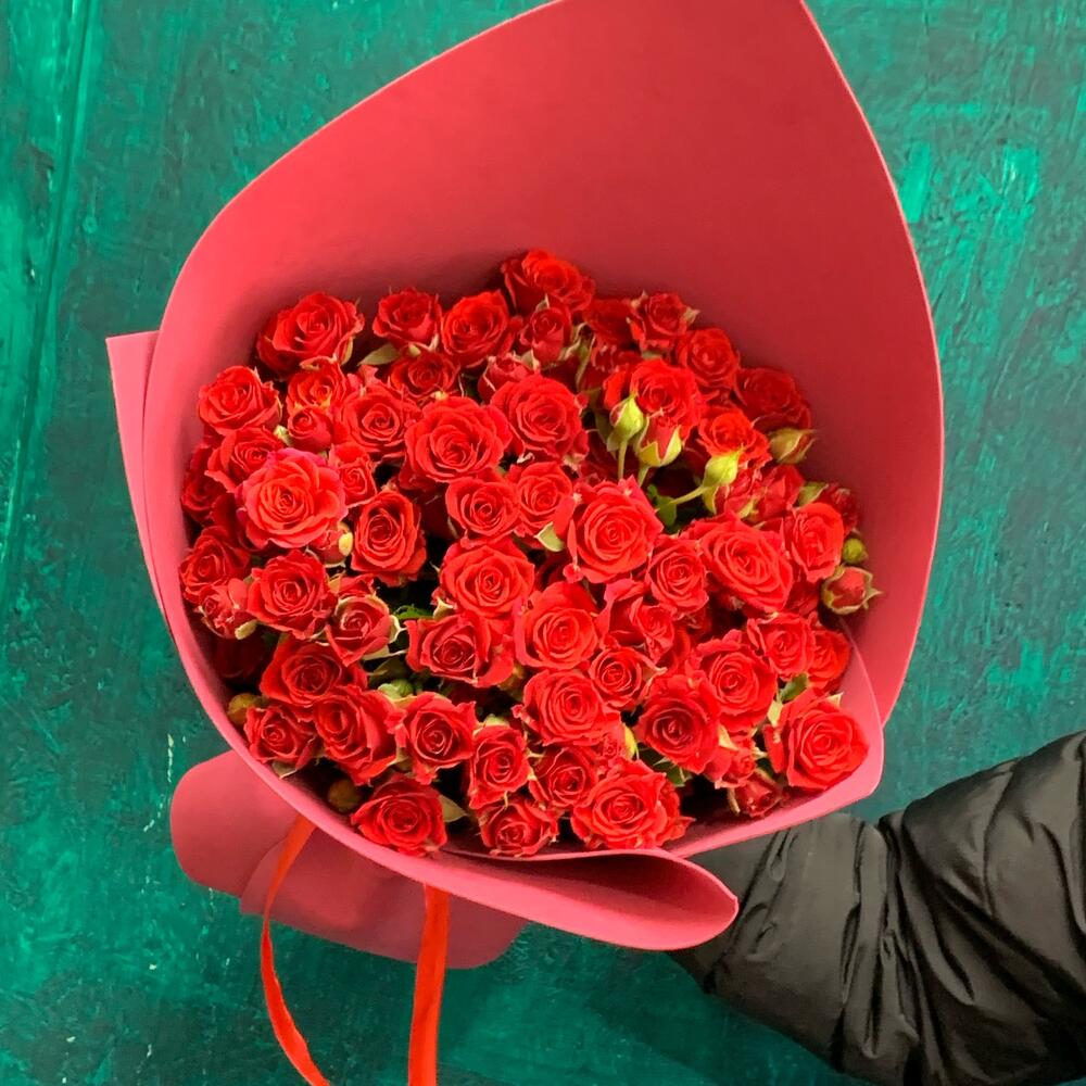 Лента атласная - 1 шт. Упаковка дизайнерская - 2 шт. Кустовая роза красная - 19 шт.