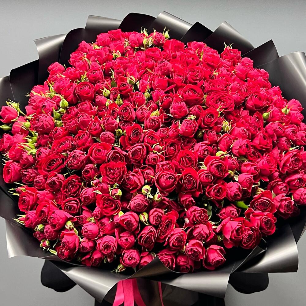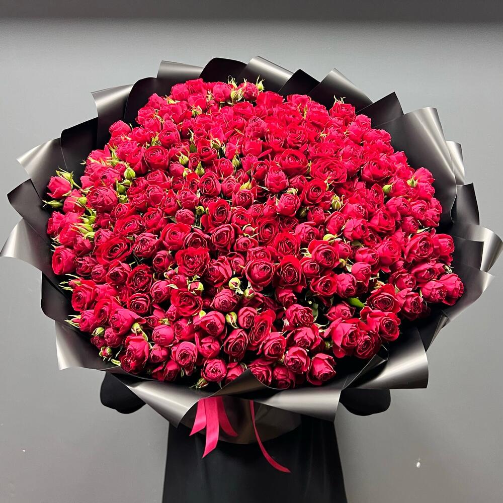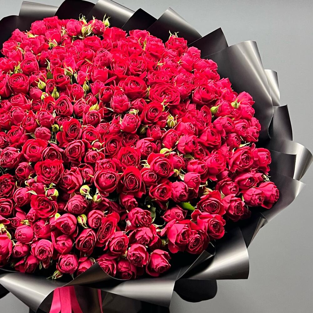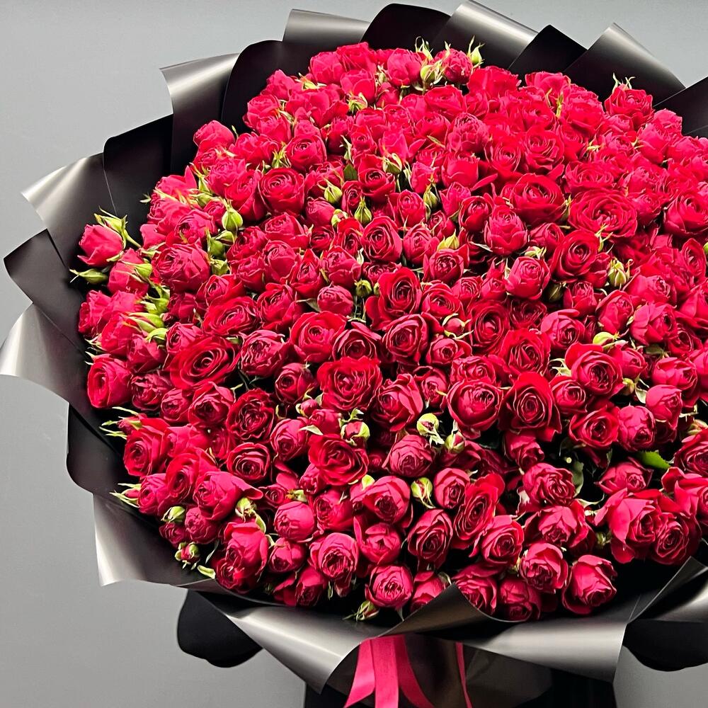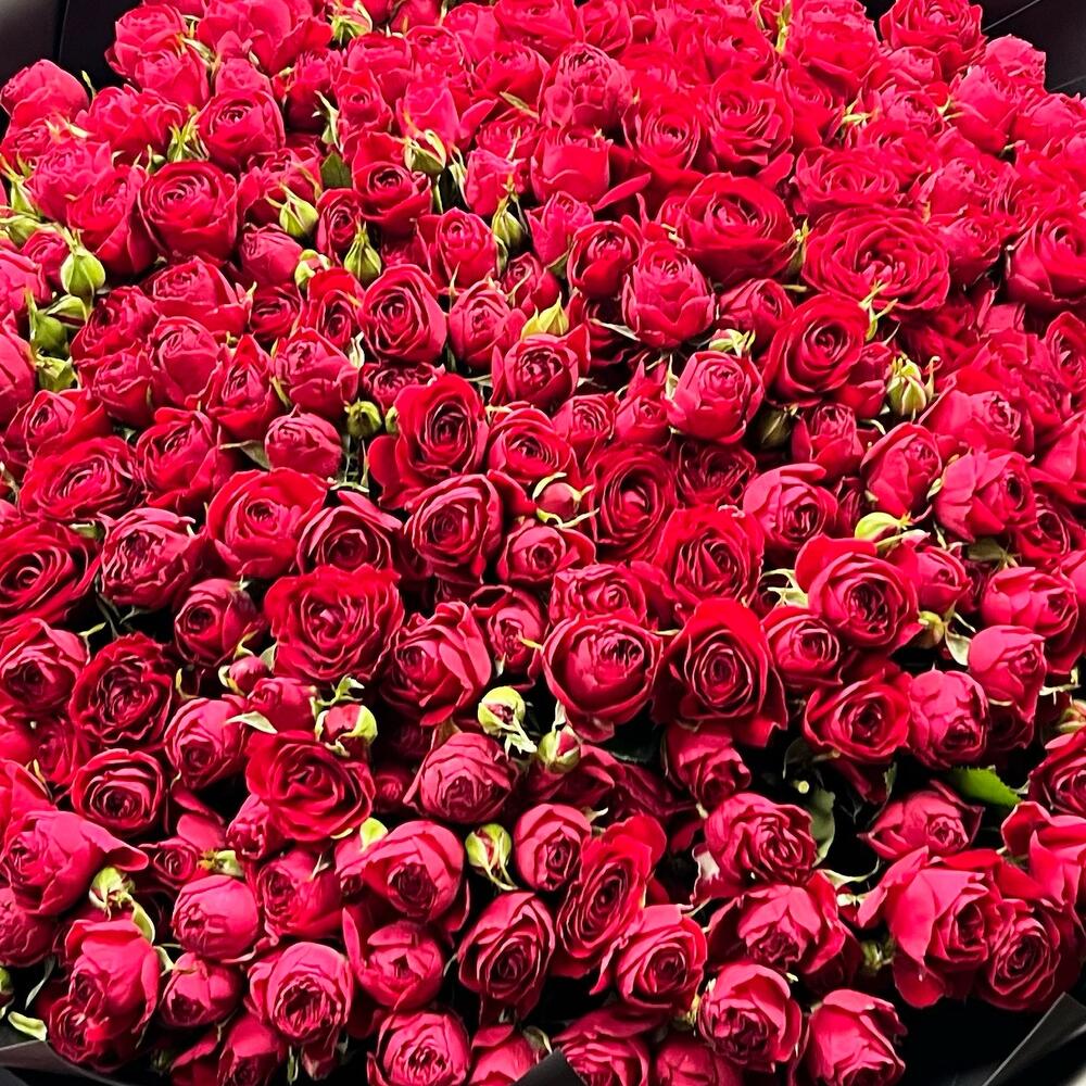 Атласная лента - 1 шт. Кустовая пионовидная роза - 61 шт. Пленка дизайнерская - 1 шт. открытчока - 1 шт.