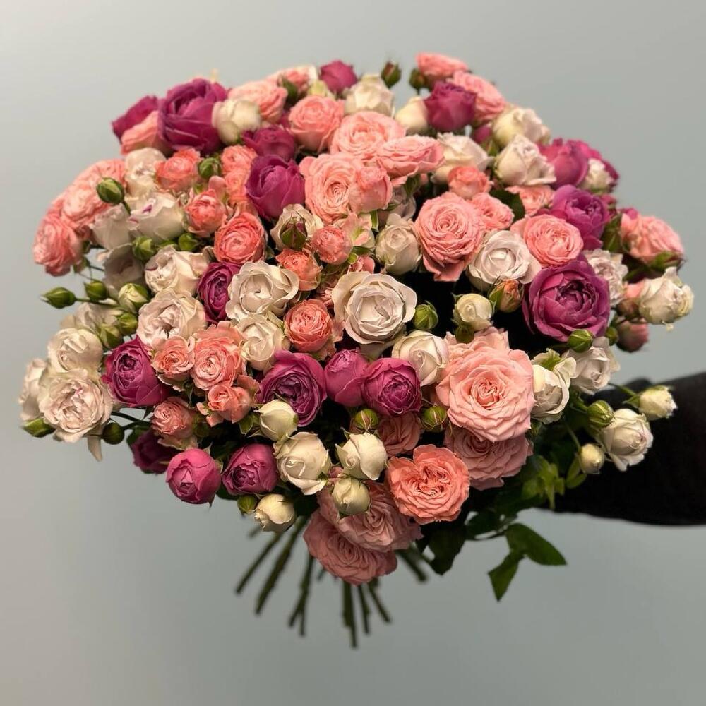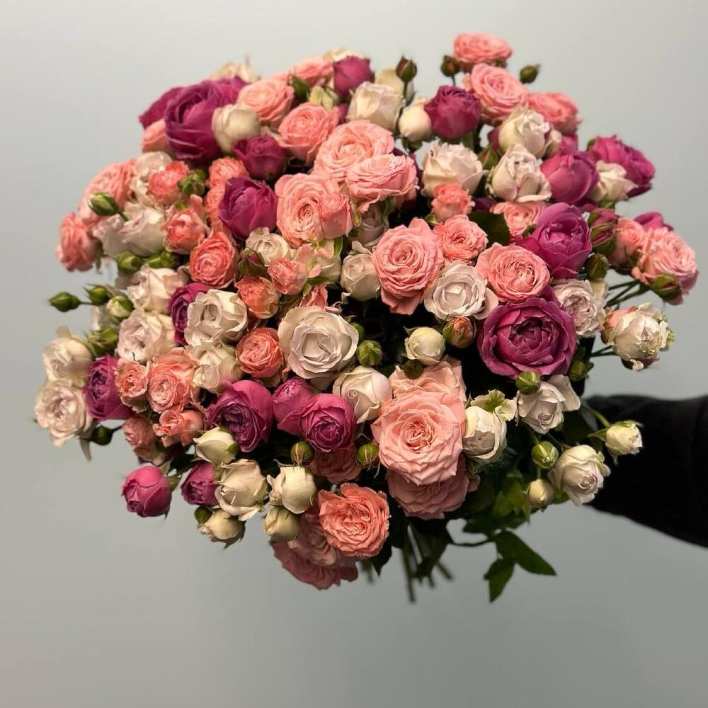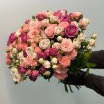 Кустовая роза - 31 шт. Атласная лента - 1 шт.