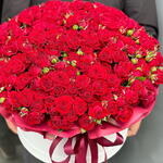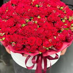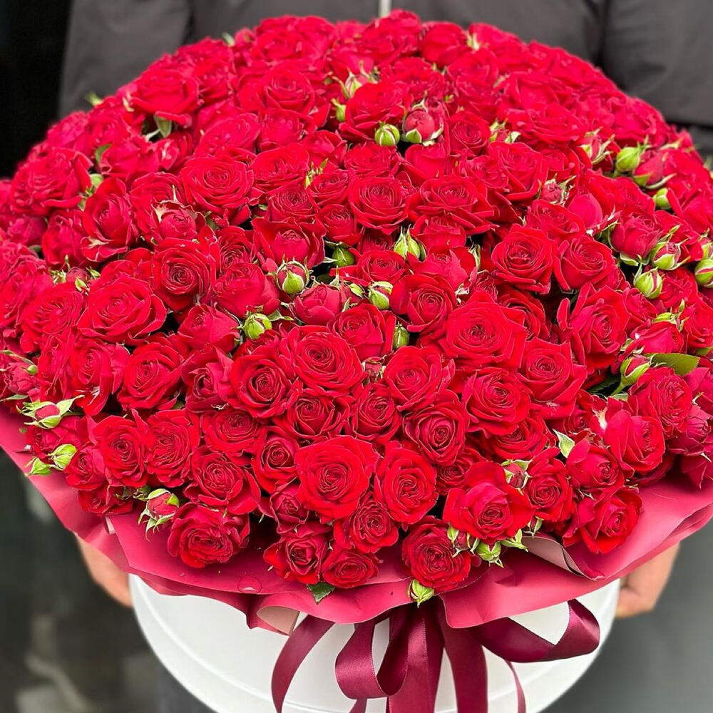Кустовая роза - 29 шт. Лента атласная - 1 шт. Открыточка с вашими пожеланиями - 1 шт. Дизайнерское оформление - 1 шт.