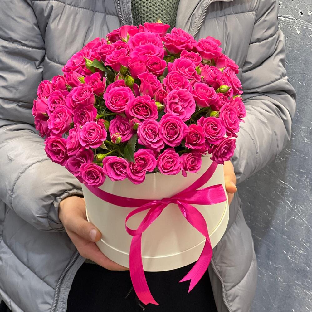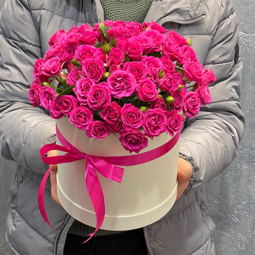 Кустовая роза малиновая в коробке