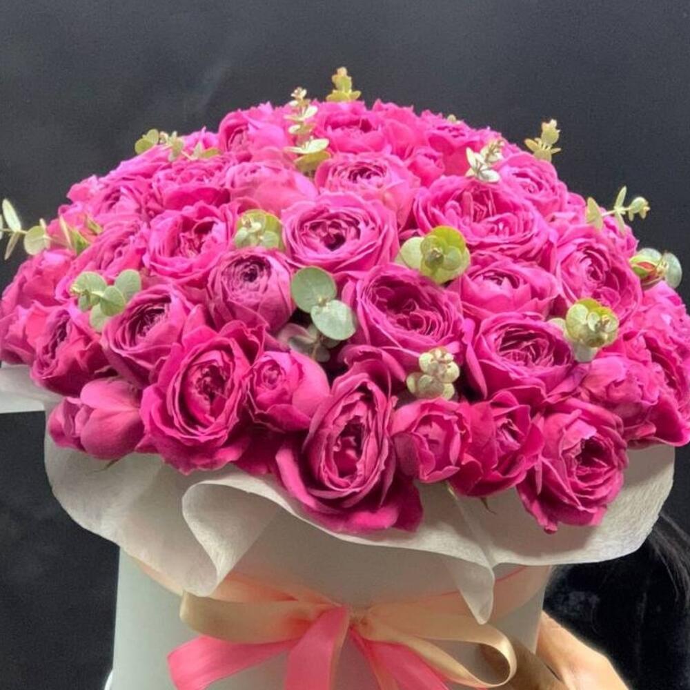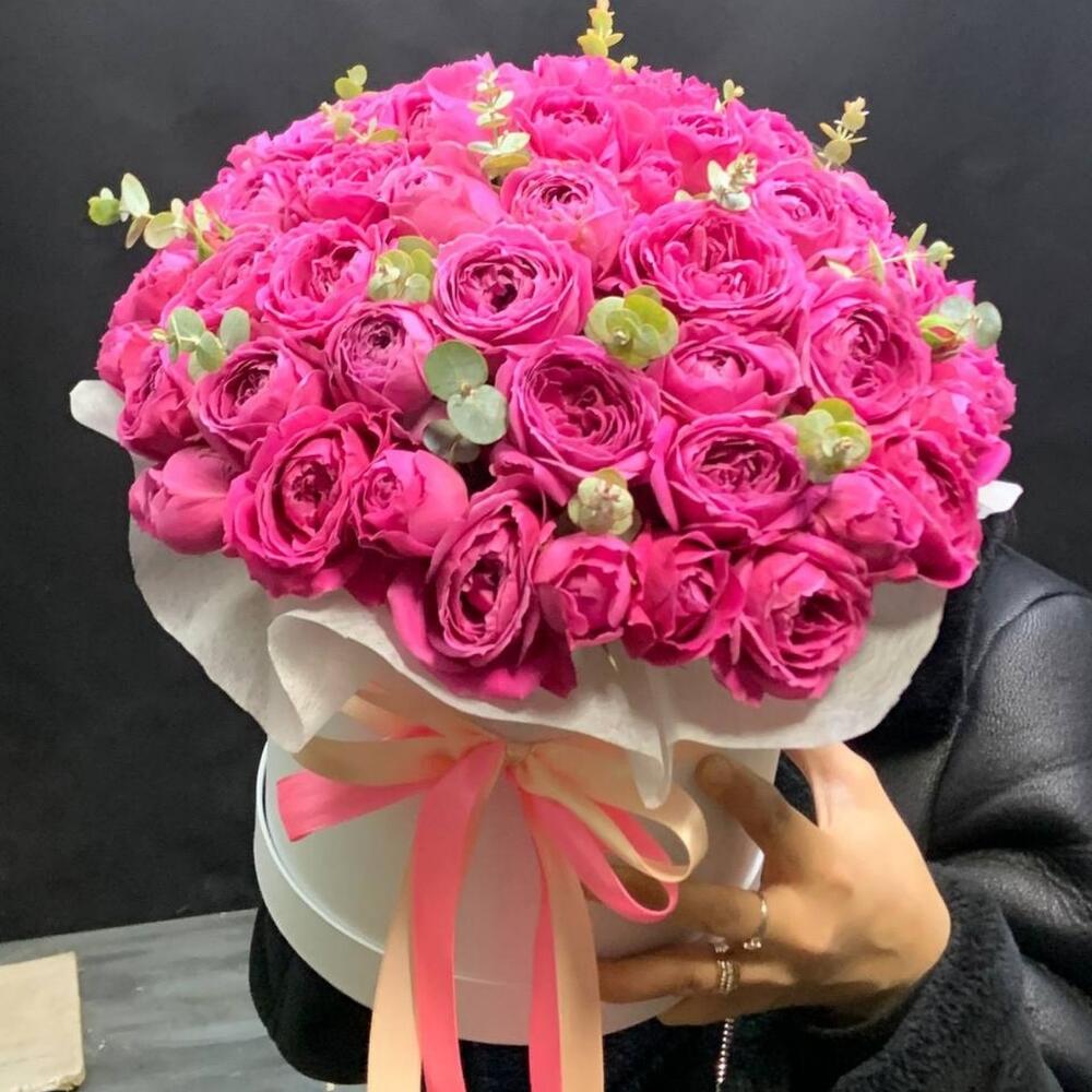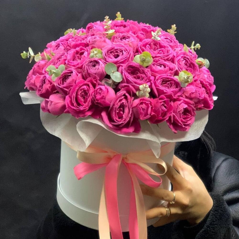 Кустовые пионовидные розы в коробке