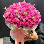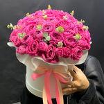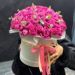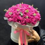 Лента атласная - 2 шт. Коробка - 1 шт. Кустовая пионовидная роза - 29 шт. Открыточка с вашими пожеланиями - 1 шт. Оазис флористический - 2 шт.
